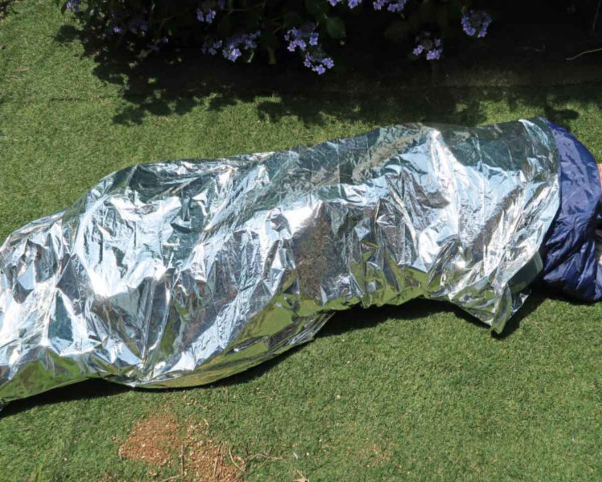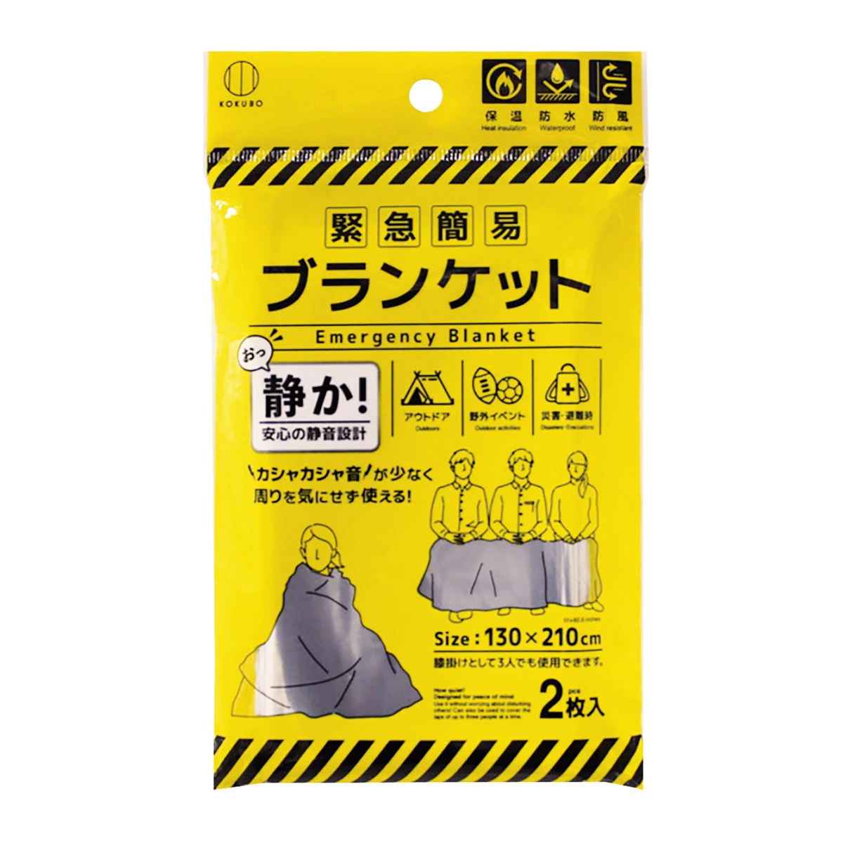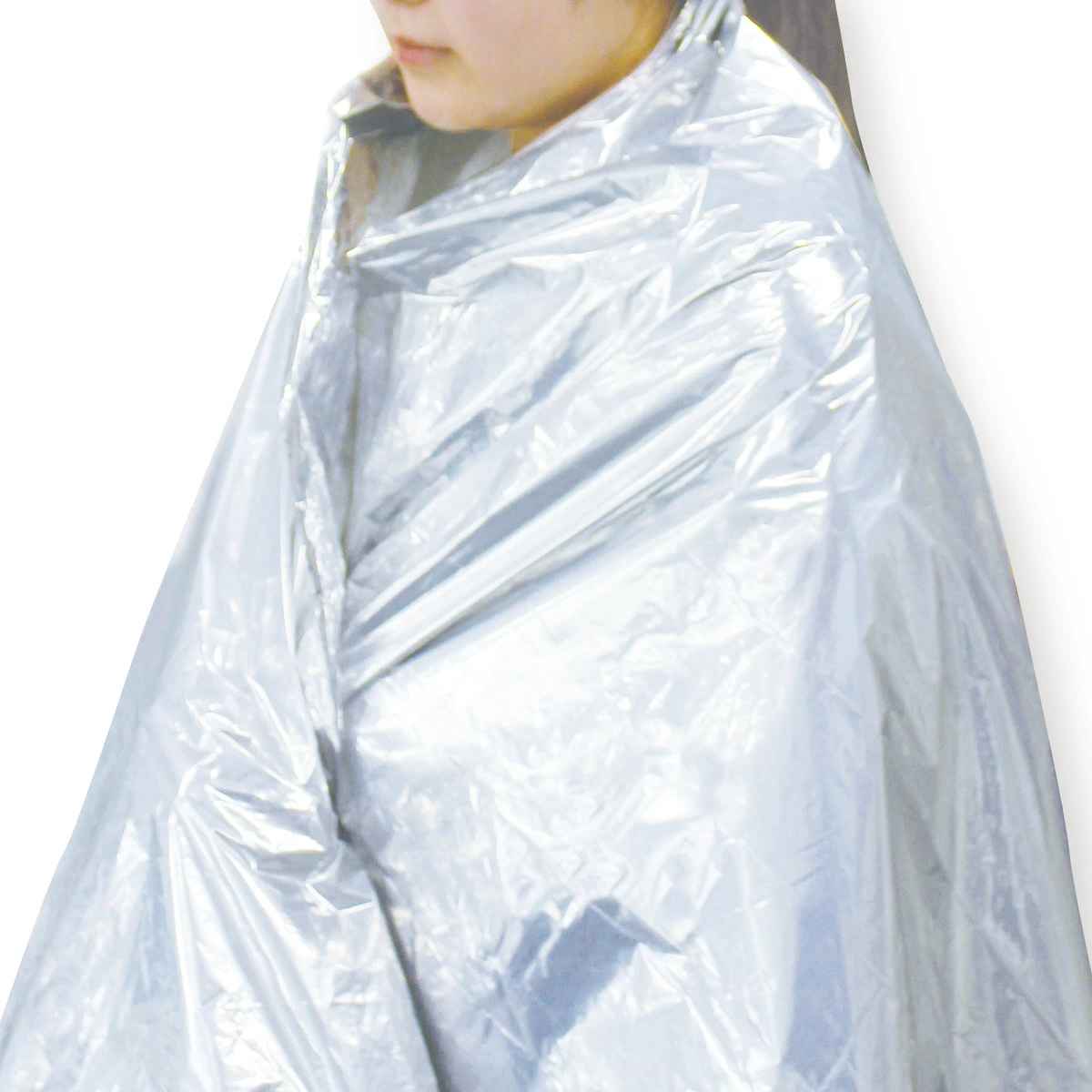 災害・避難時の防寒対策として使えるアルミブランケットです。アルミニウム特有のシャカシャカ音を抑えた静音タイプのため避難時や就寝時も周囲への音を気にせず休めます。