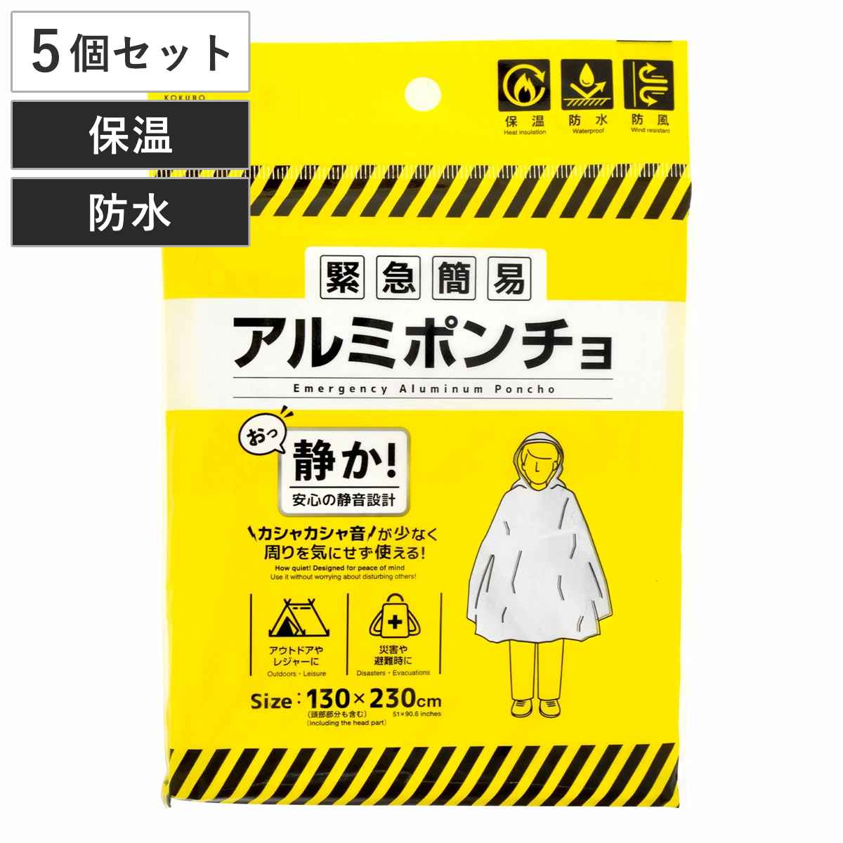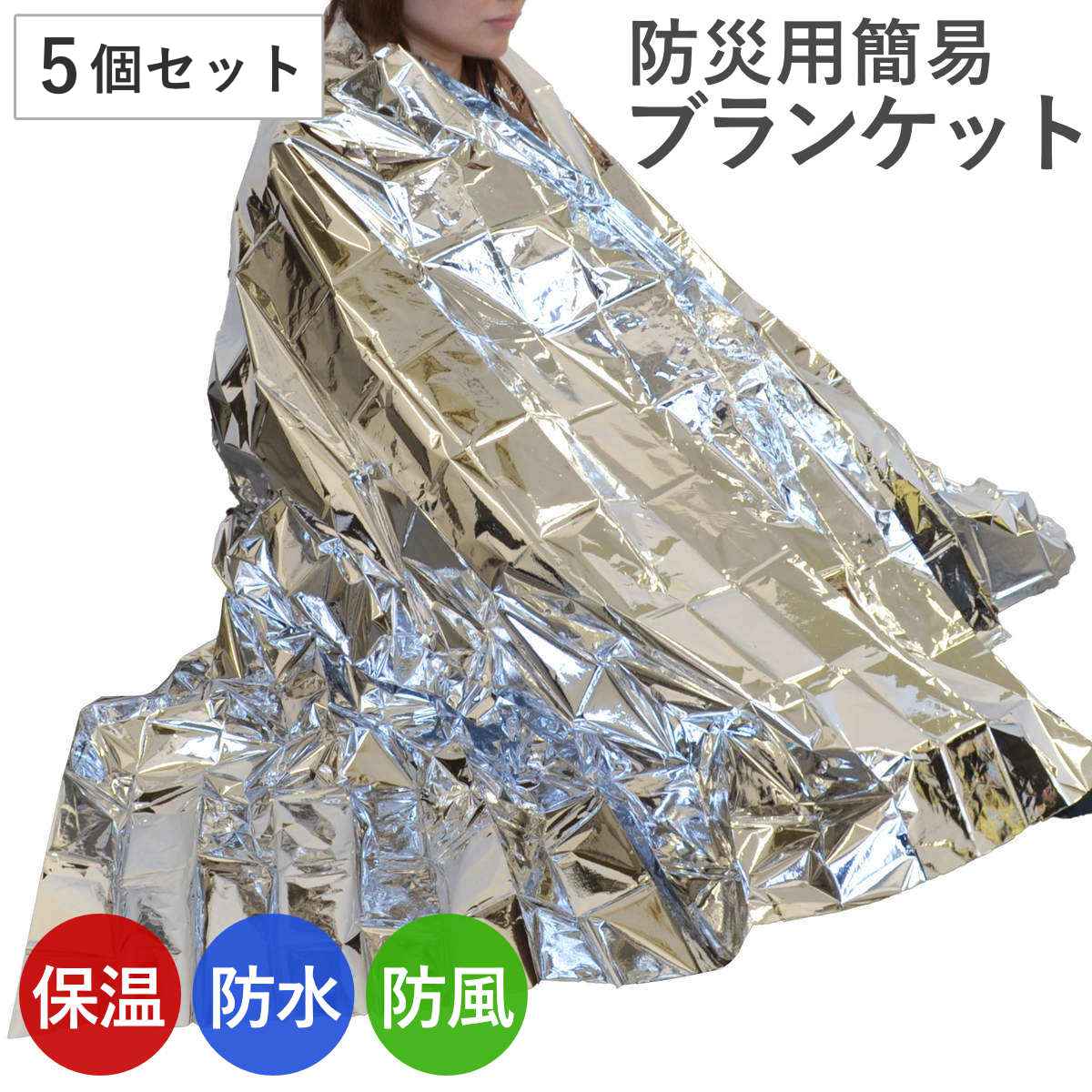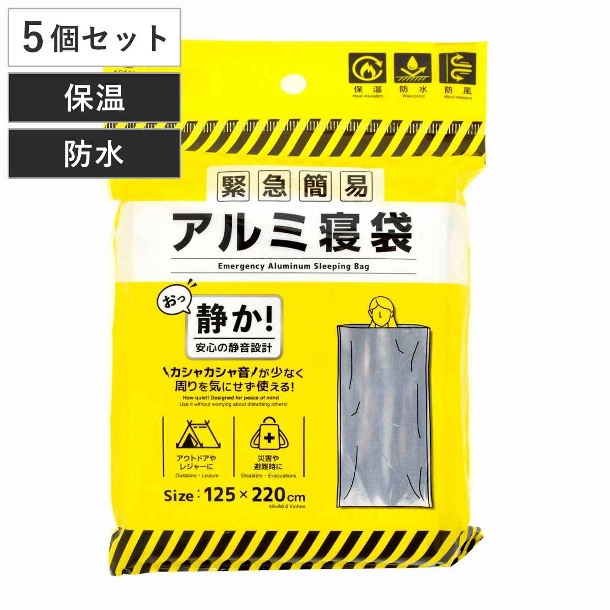 簡易寝袋 緊急 簡易 5個セット アルミ寝袋 静音タイプ 1枚入 防災 ( アルミ ブランケット ポンチョ マント 防災用品 寒さ対策 保温 防風 防水 防寒 災害時 目隠し 薄い 軽量 レジャー 就寝時 避難所 アルミシート キャンプ )