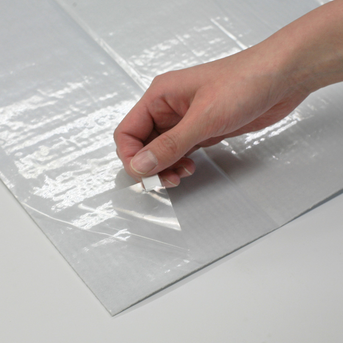 | 材質 | 上面:PETアルミ蒸着フィルム 本体:発泡ポリエチレン 接着剤:LDPE 離型紙:アクリル樹脂 PETフィルム |