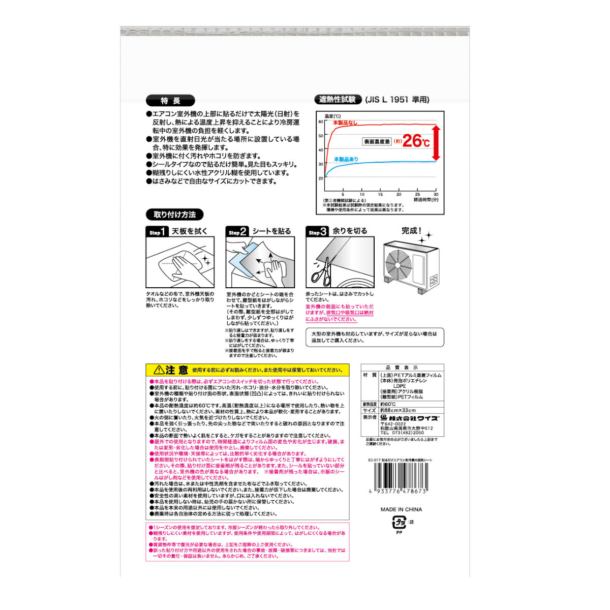 ●直射日光を反射して冷房効果を上げる室外機の日除けパネルです。