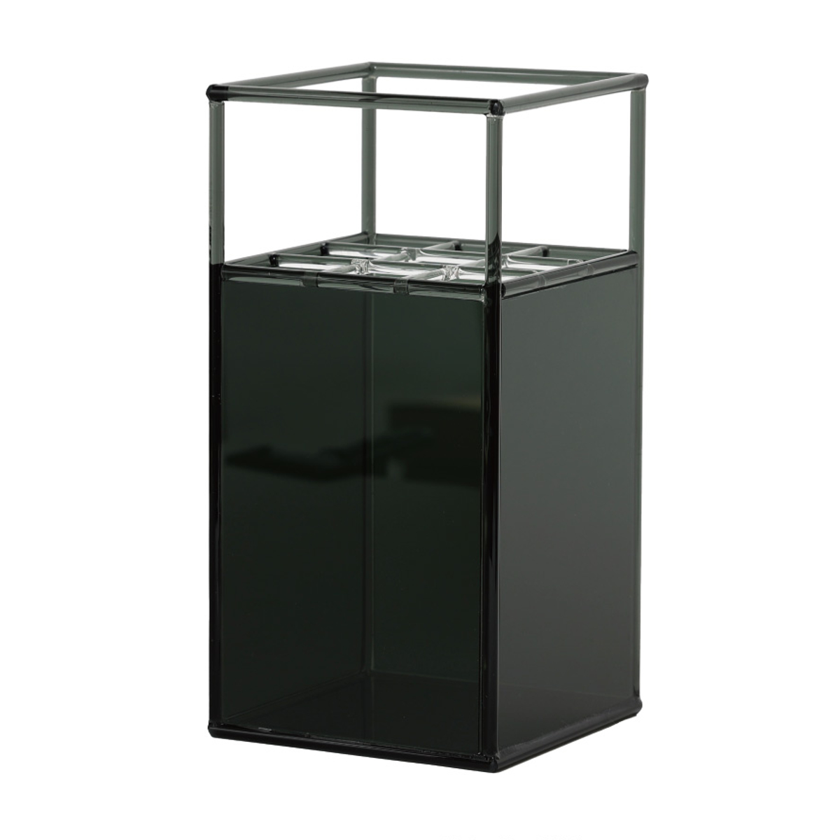 下部は水を入れるスペース、上部は花を支えるフレームとして機能。さらに、中央部にある格子状のフレームが背の高い花や茎が細い花をしっかりサポートし、安定感を生み出します。