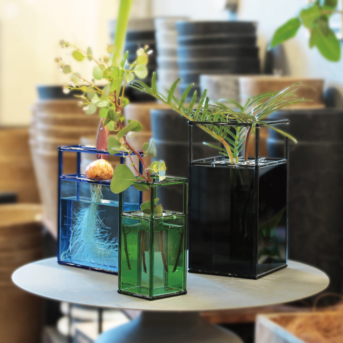 切り花やドライフラワーを飾るのはもちろん、水耕栽培にもおすすめです。透明な素材なので、植物の成長を間近で観察することができます。