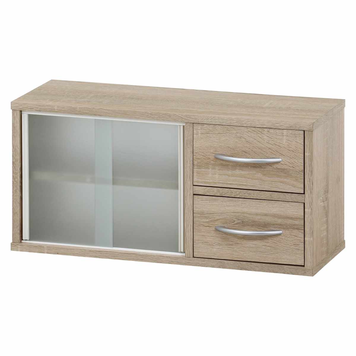 片側はガラス扉収納です。ほのかに透けるすりガラスが、収納物をふんわりとカバーし、生活感をさりげなく隠します。引き戸タイプなので、限られたスペースでもスムーズな開閉が可能です。