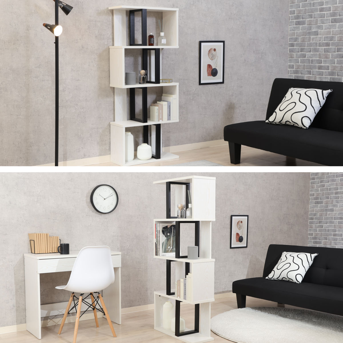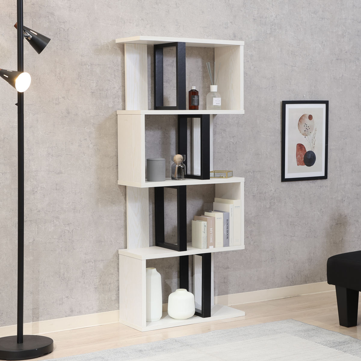 S字ディスプレイラック 幅59cm 4段 A4サイズ対応 ( ディスプレイラック S字 ラック 棚 A4対応 ツートン シェルフ 飾り棚 間仕切 収納 家具 ナチュラル ホワイト 四段 ) 【ナチュラル】