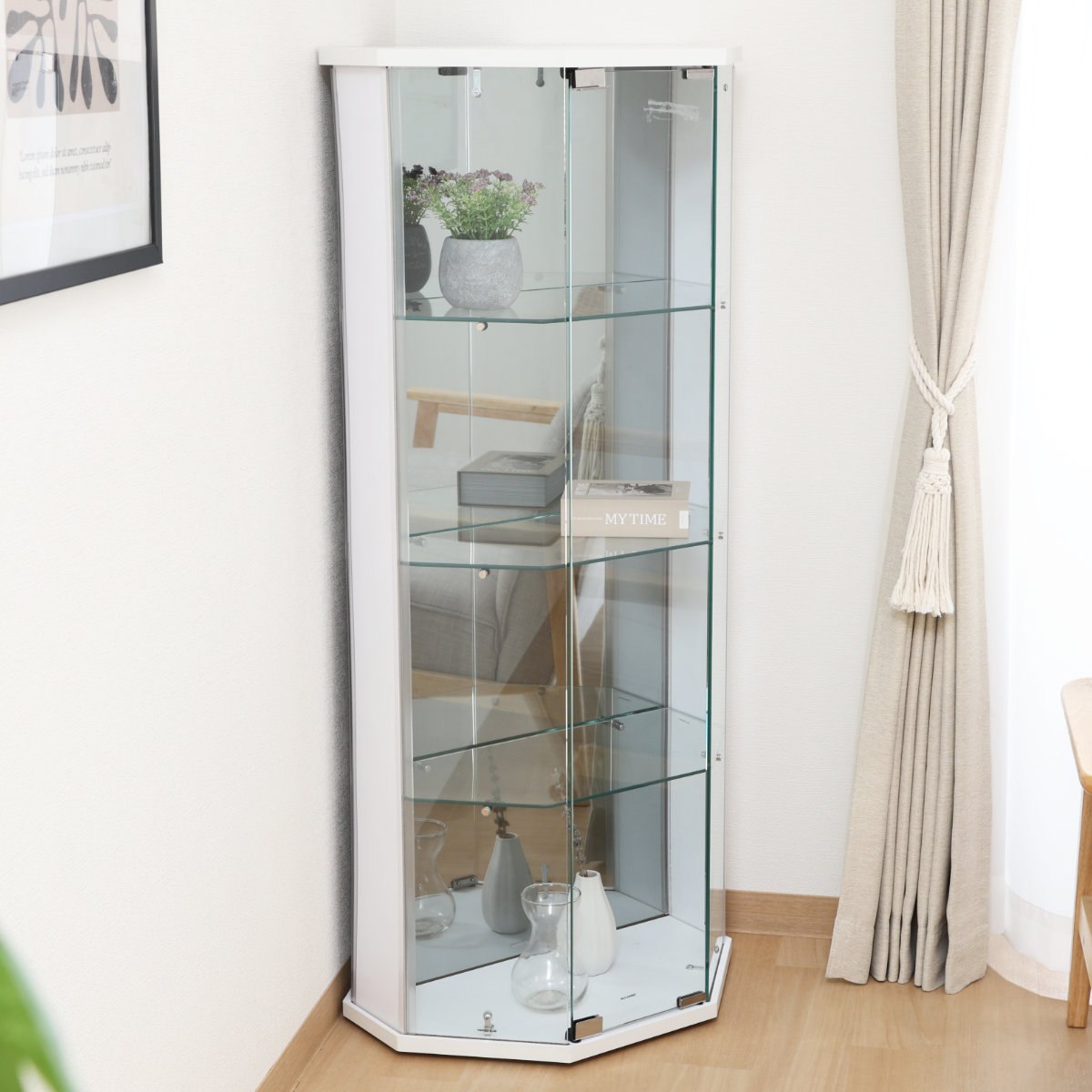 お気に入りのコレクションを様々な角度から楽しめる、背面ミラー仕様のガラスコレクションケースです。お部屋の角にピッタリ収まるコーナータイプは、デッドスペースを有効活用できます。お部屋の雰囲気を損なわずに「好き」を飾って、眺められる、シンプルで開放感のある大人のデザインです。