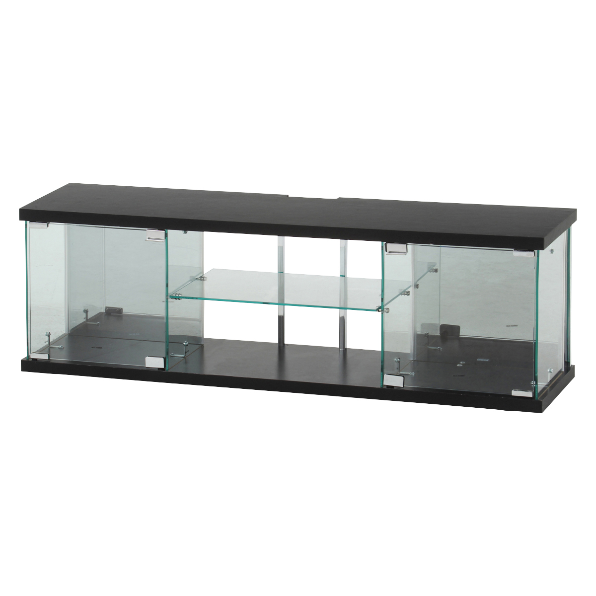 テレビ台 幅110cm ガラスコレクションケース ショーケース ( TV台 テレビボード コレクションケース AVラック 収納 ラック 棚 BAAL 背面ミラー 展示 フィギュアケース 見せる収納 キャスター付 ブラック ホワイト ) 【ブラック】