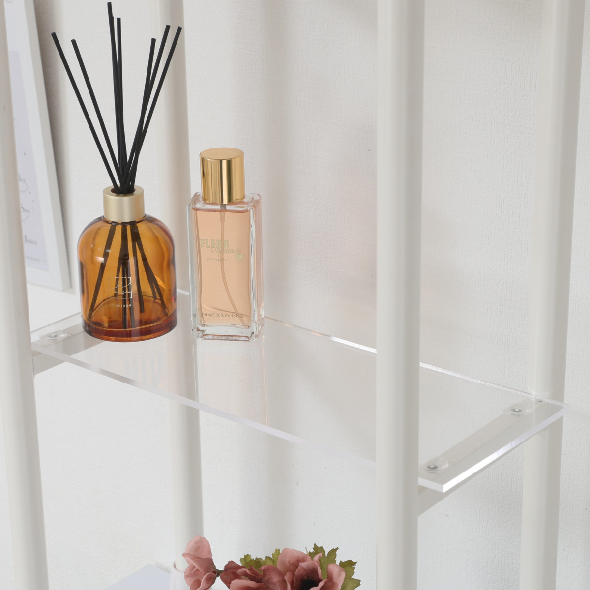 アクリルの棚板は幅39×奥行14.8cmのフラット仕様で、棚受け吸盤でしっかりと固定されます。コレクションだけでなく、日用品の収納スペースとしてもお使いいただけます。