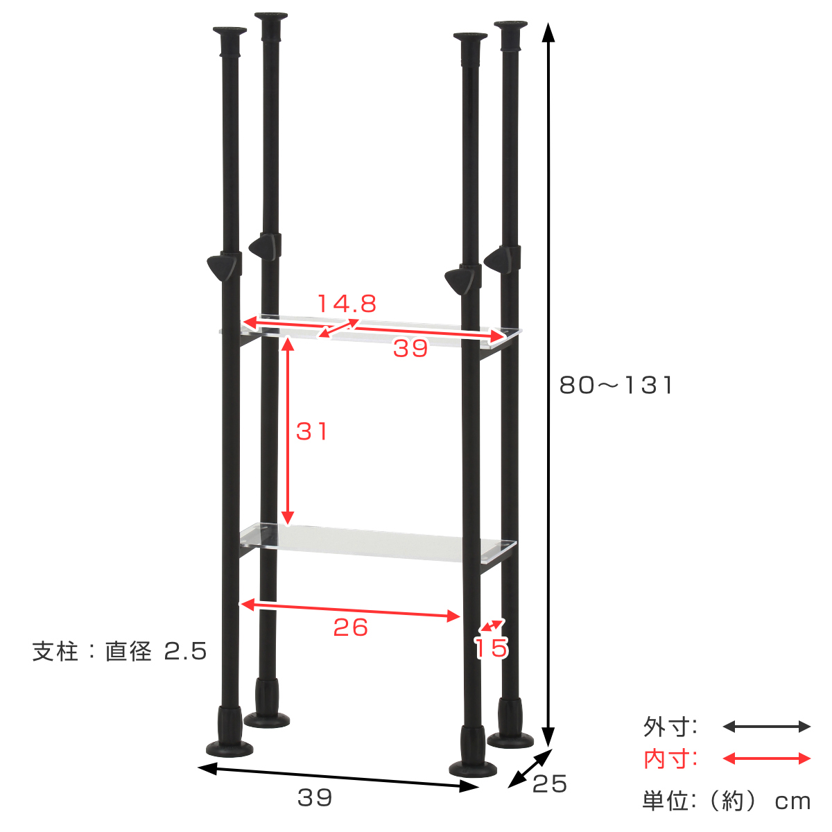 | サイズ | 約 幅39×奥行25×高さ80~131(cm) 棚板厚さ:約 0.4(cm) |