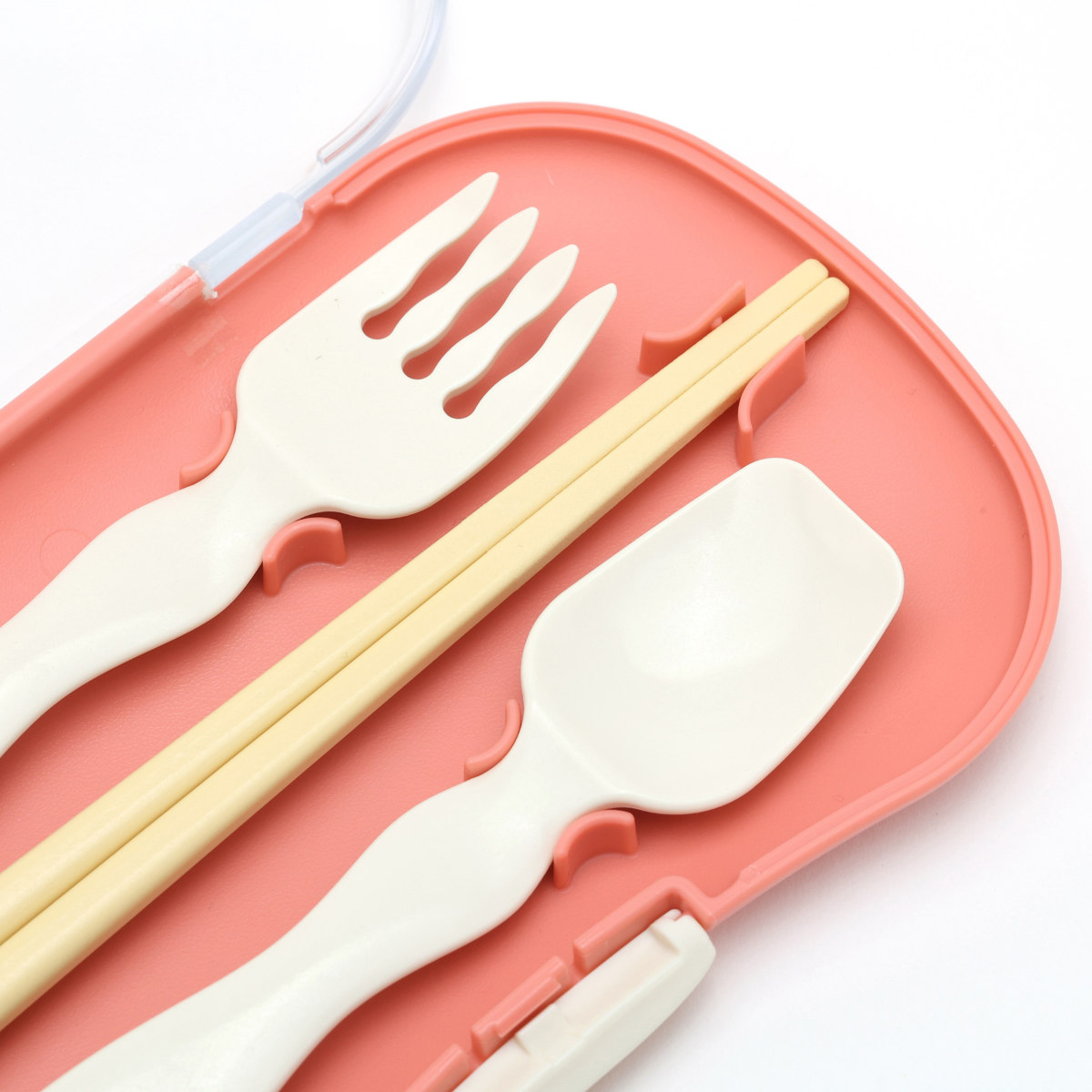 ケースは中身が一目でわかる透明の蓋付きで、お子さまもどのカトラリーが入っているかすぐに確認できます。カトラリーをしっかり固定できるホルダー付きで、持ち運ぶときもガタつきにくく安心です。