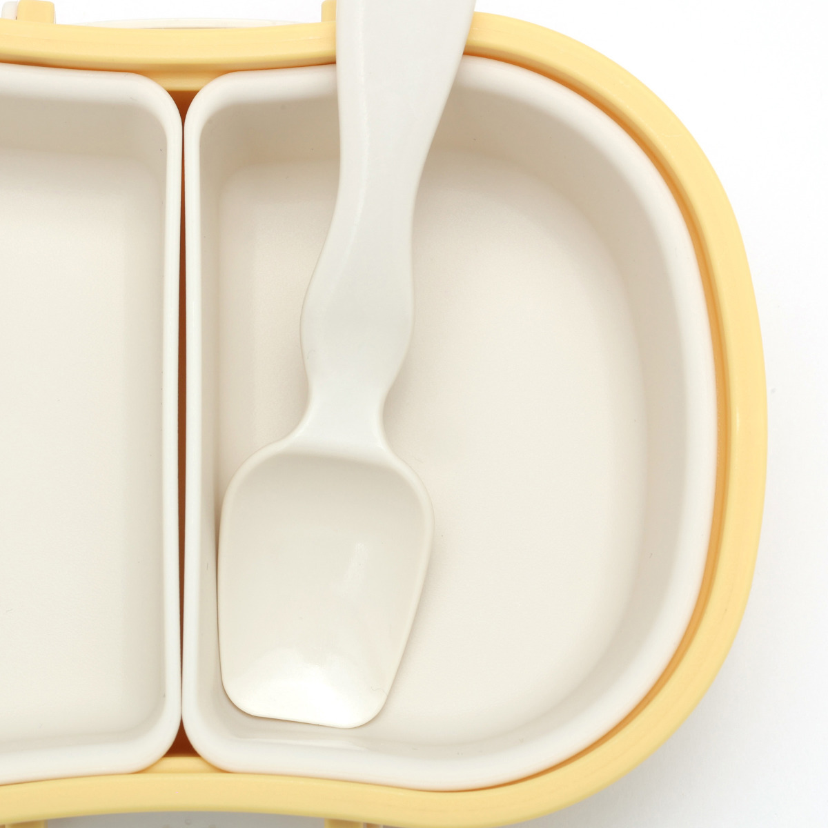 お弁当箱の隅に寄った食材をすくいやすいようにスプーンの先端は平らになっています。食材を集めやすいので食べ残しが少なくなります。