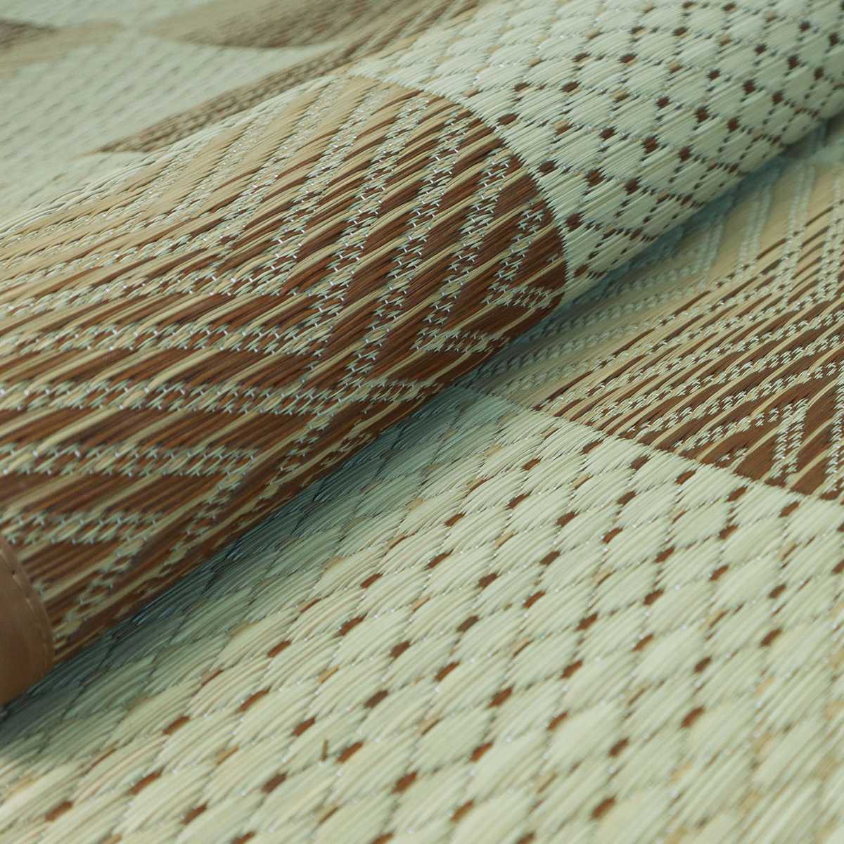 い草を織り込む経糸の間口を変えて紋様を織り出したもので、約209本の経糸が複雑な紋様をつくり出します。最も技巧的で折柄の変化に富む一品です。江戸間2畳用はラグとして部分敷きにも使える大きさです。畳の気になる箇所だけ敷いたり、フローリング上にラグの代わりに敷いたり、様々なシーンにお使いいただけます。