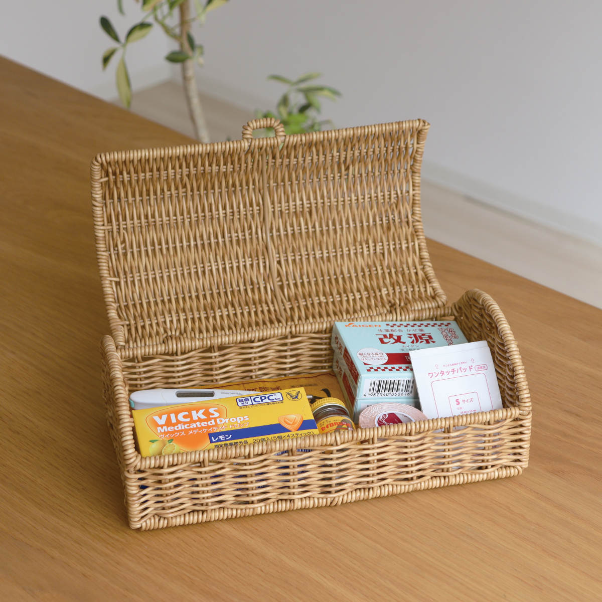 常備薬、ティーバッグ、カトラリー、コスメなどの収納にぴったりです。生活感が出がちなゲーム機や充電コードもふた付きで目隠ししながら収納できます。