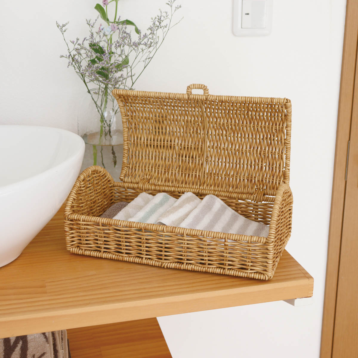収納ボックス ユティルナイール ふた付き ローバスケット 洗える ( フタ付き かご 収納 カゴ ラタン風 水洗い 収納かご 小物収納 幅27×奥行15×高さ9.5cm 天然素材風 リビング収納 デスク整理 丸洗い )