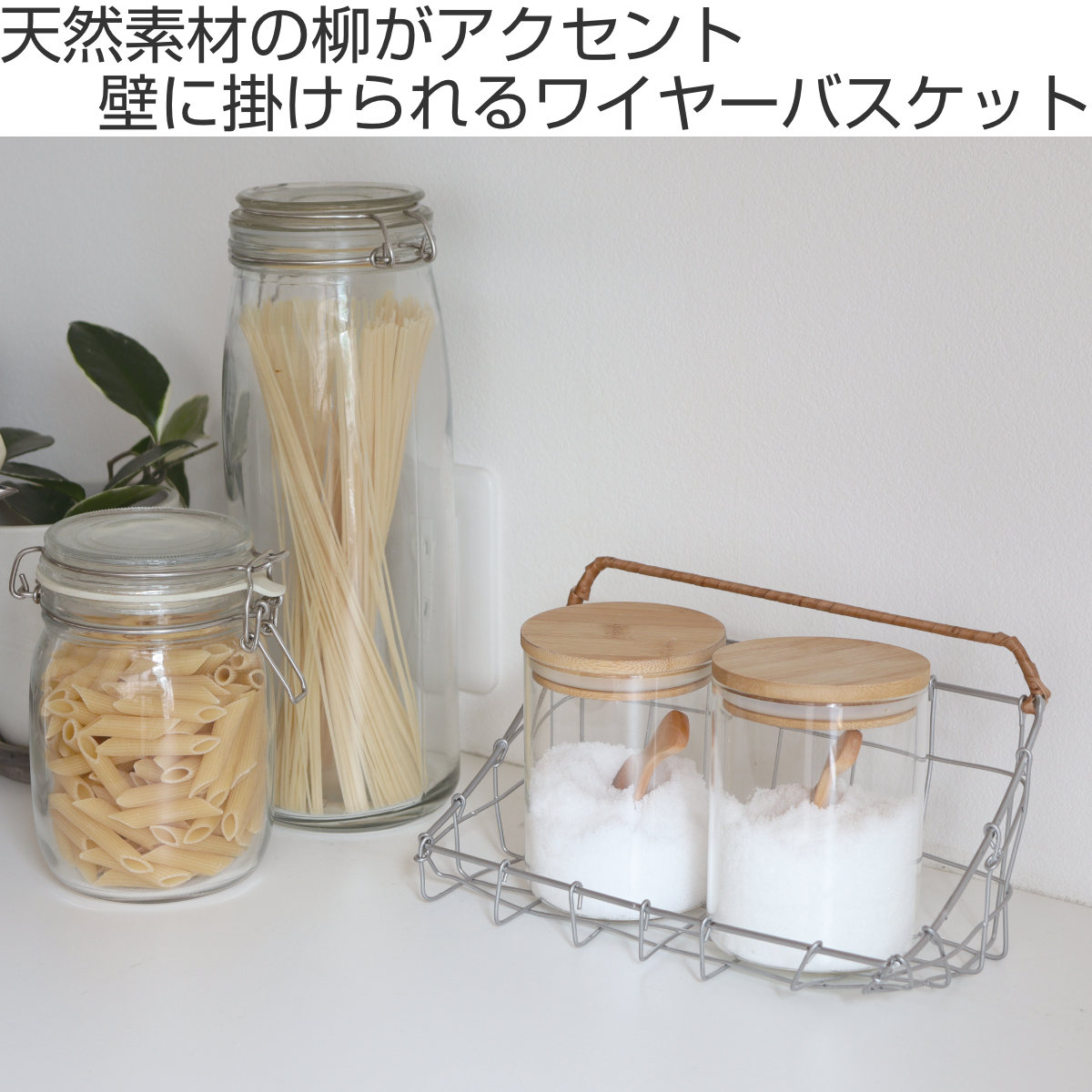 バスケット 壁掛け デュソール シェルフバスケット ワイヤーバスケット S ( かご カゴ 収納 幅25×奥行12×高さ13.5cm アイアン 収納かご 小物収納 見せる収納 ワイヤー おしゃれ 壁面収納 柳 天然素材 )