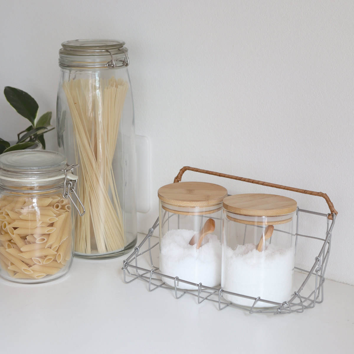 統一感のないものでもワイヤーバスケットに入れることでまとまりが生まれ、スタイリッシュな雰囲気を演出します。調味料、コップ、観葉植物など、アイデア次第で様々なシーンで活躍します。
