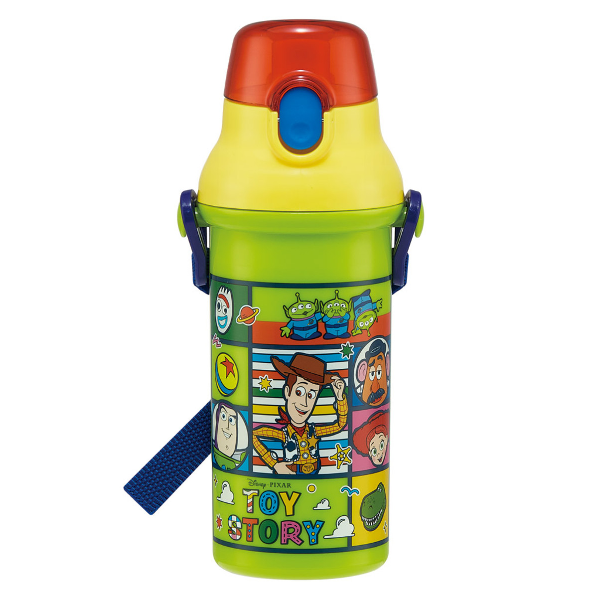 水筒 480ml 抗菌直飲プラボトル トイ・ストーリー25 ( トイ・ストーリー 子供用 抗菌 プラスチック製 ダイレクトボトル 直飲み ワンタッチ 日本製 抗菌加工 AG 銀 ショルダーベルト付き 広口 軽量 ボトル ワンプッシュ )