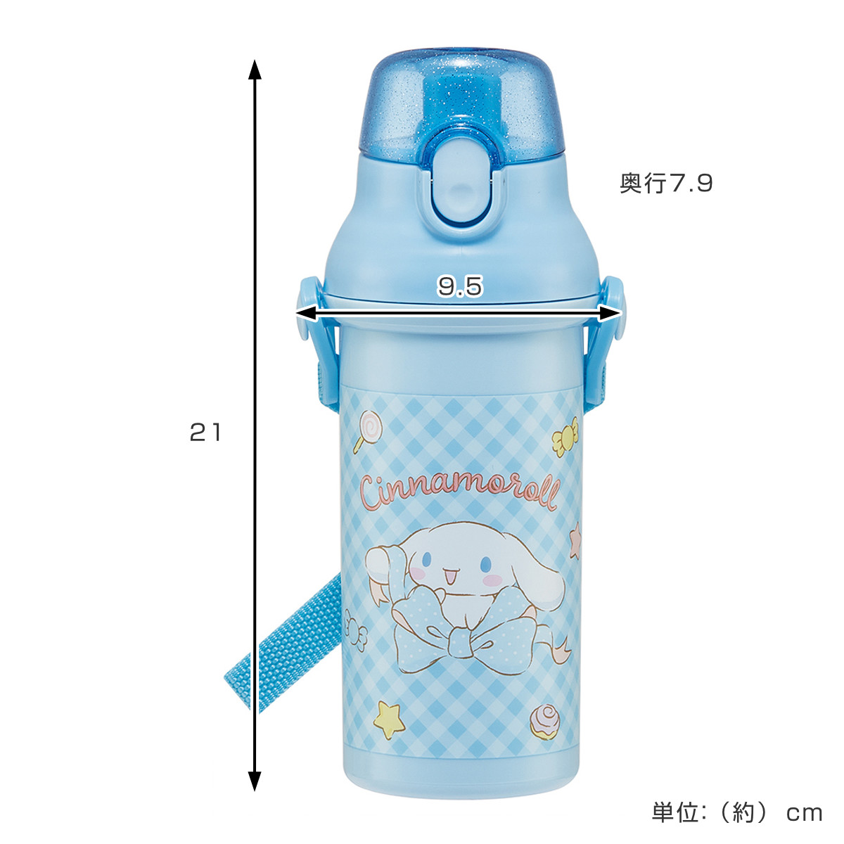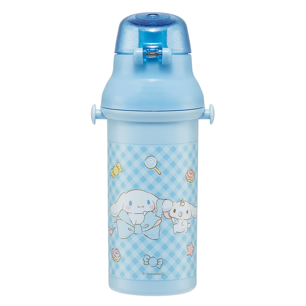 水筒 480ml 抗菌直飲プラボトル シナモロールビックリボン ( シナモロール 子供用 抗菌 プラスチック製 ダイレクトボトル 直飲み ワンタッチ 日本製 抗菌加工 AG 銀 ショルダーベルト付き 広口 軽量 ボトル ワンプッシュ )