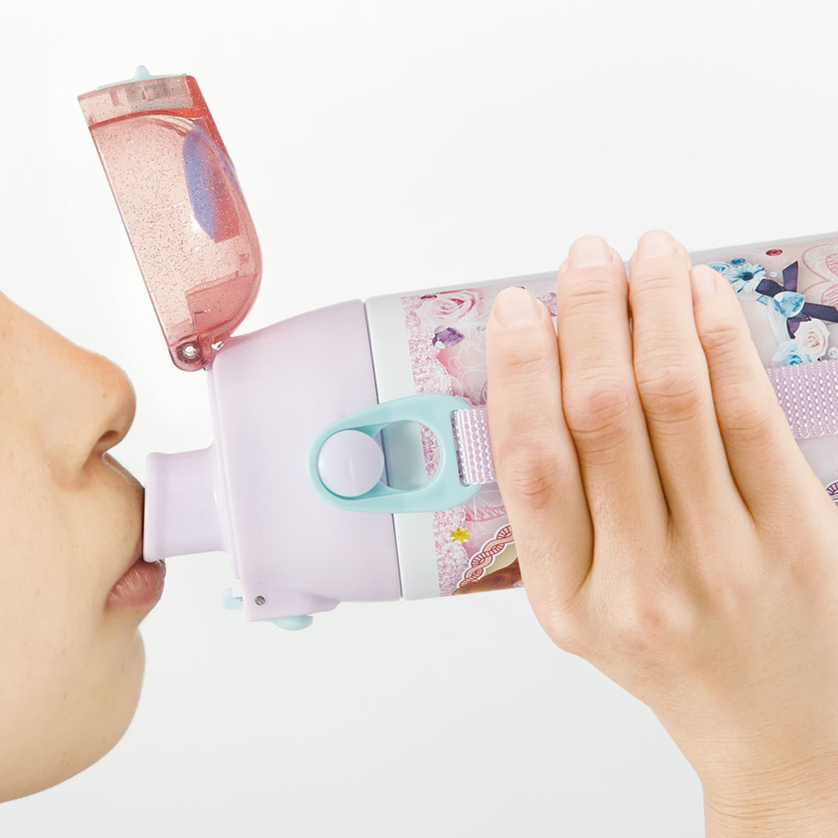 水筒の蓋はボタンを押すだけで開けることができるワンタッチ式です。飲み終わったら蓋をカチッと閉めるだけなので、小さなお子様でも簡単に開閉できます。