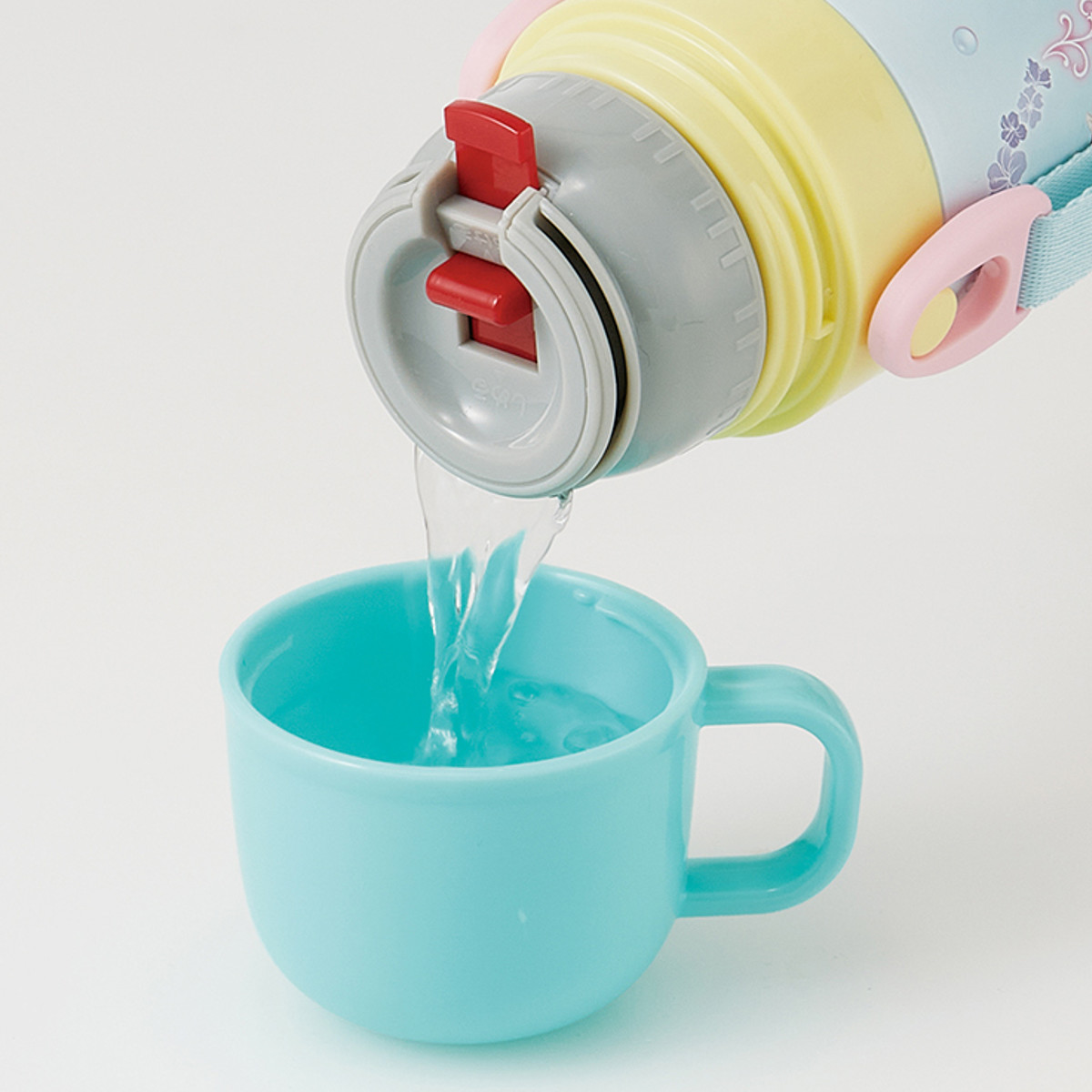 蓋と中栓を付けると、コップ飲みの水筒になります。温かい飲み物や冷たい飲み物にもご使用いただけます。