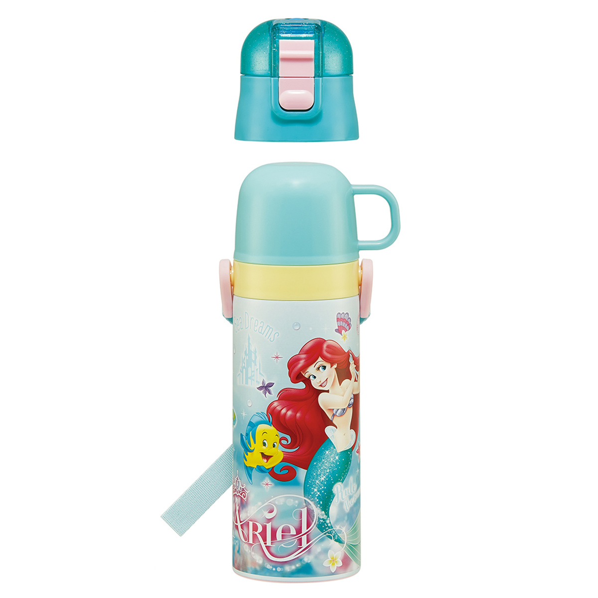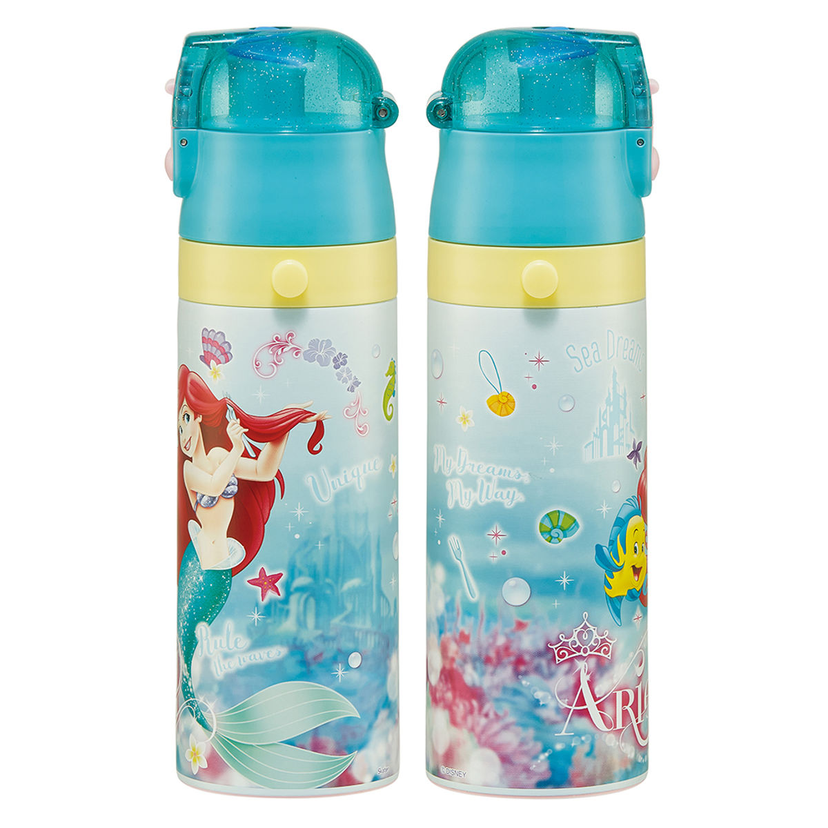 水筒 470ml 430ml 超軽量2WAYステンレスボトル アリエル24 ( リトル・マーメイド 保冷 保温 直飲み コップ付き ワンプッシュ マグボトル コップ飲み 2way 子供用 すいとう ボトル キッズ ワンタッチ ステンレス 超軽量 軽量 )