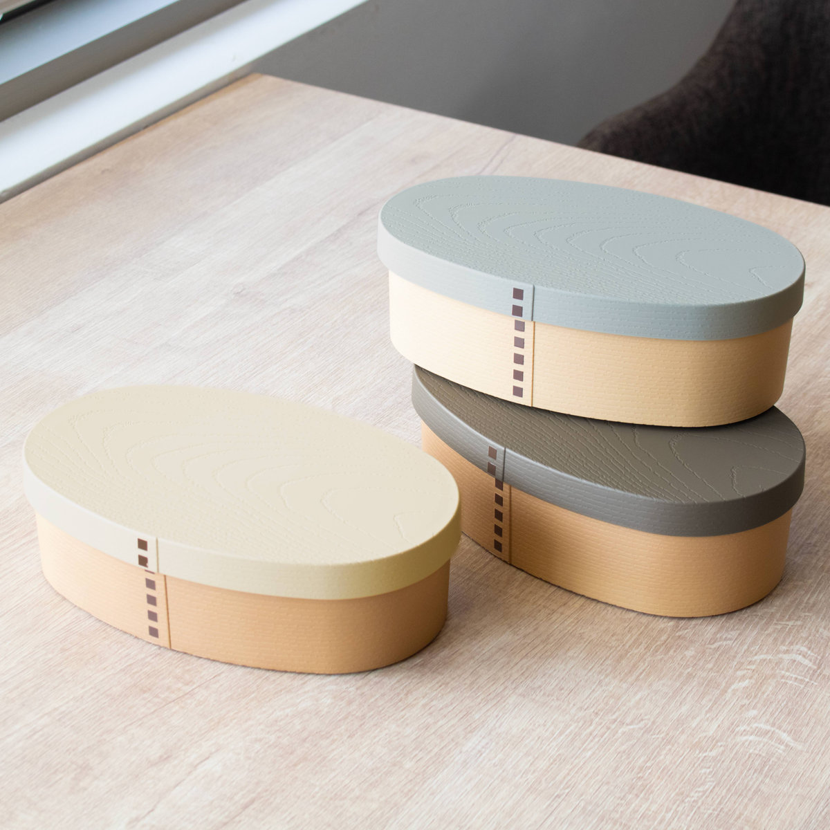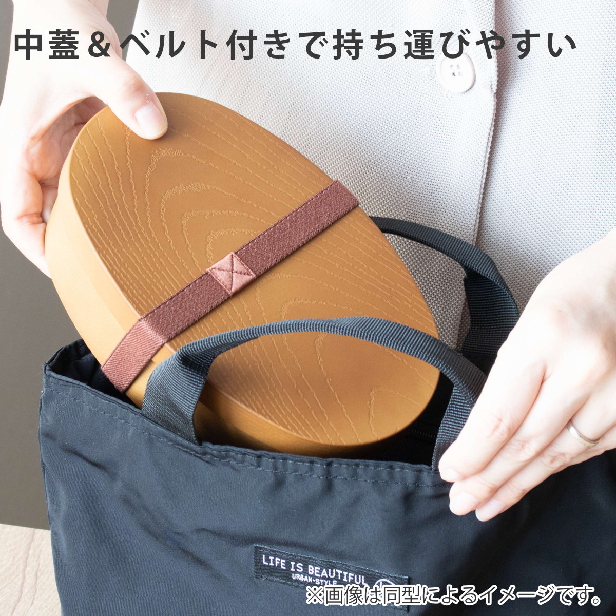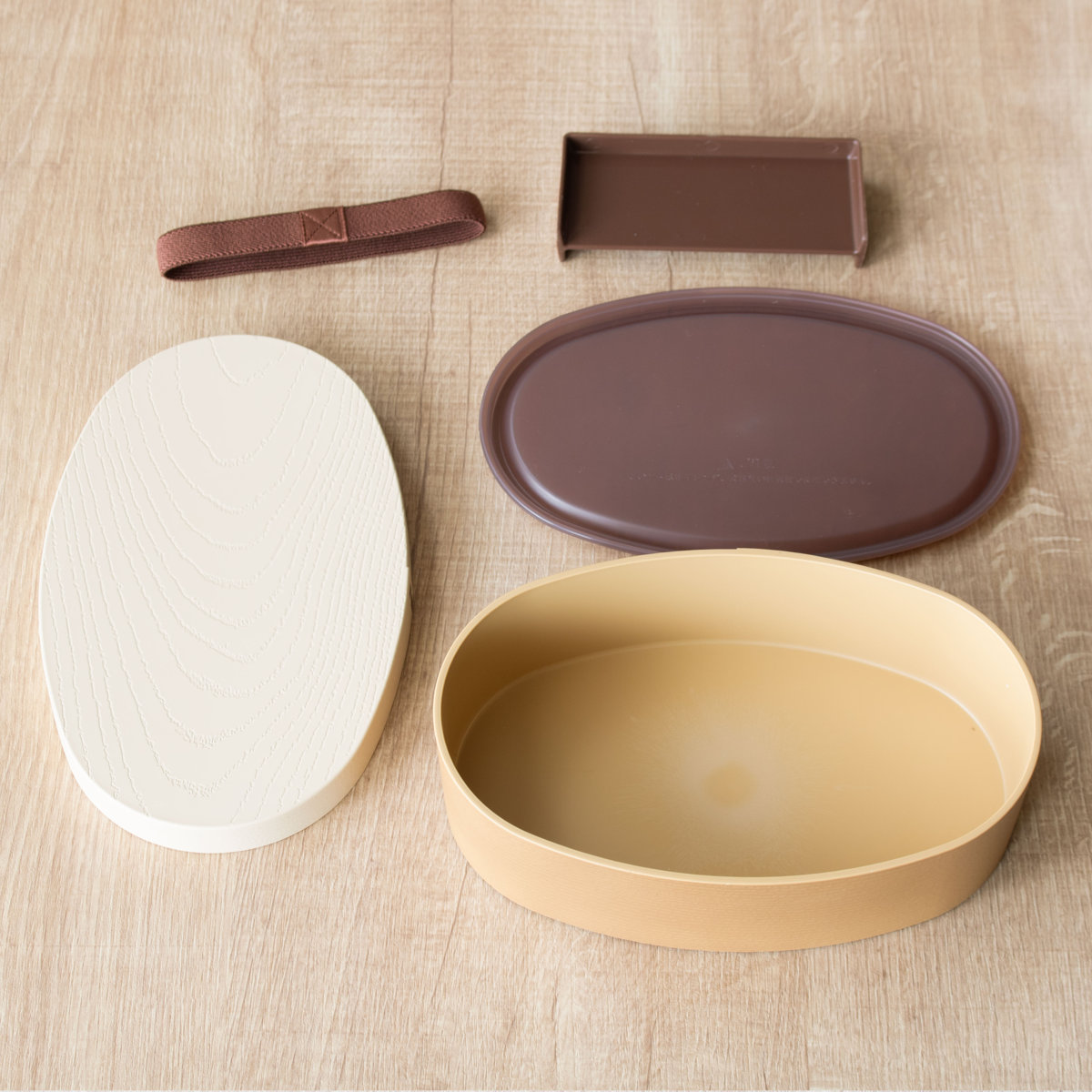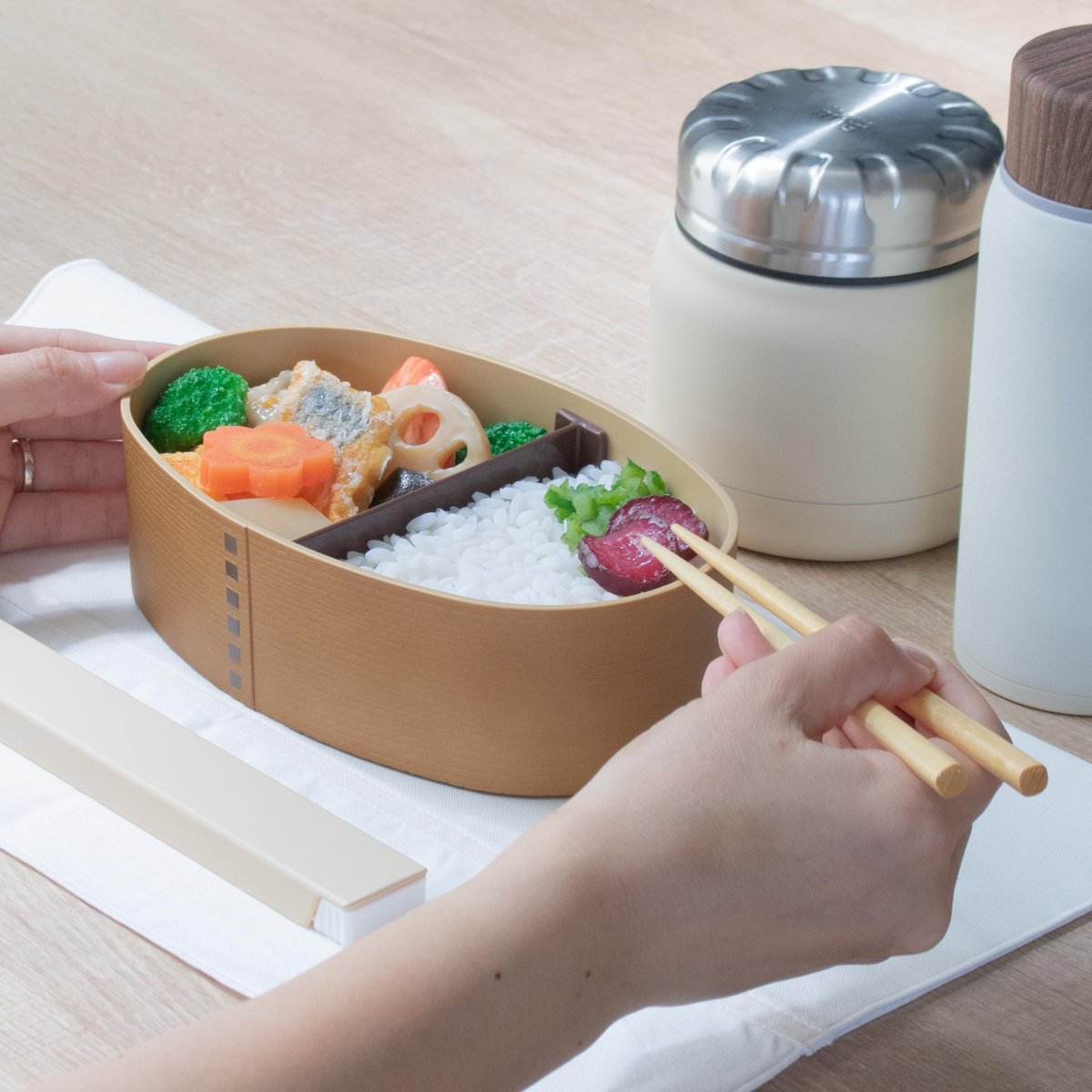 樹脂製のお弁当箱でありながら、まるで本物の木のような仕上げが施されています。木製のお弁当箱に憧れているけどお手入れが大変そうという方にぴったりです。