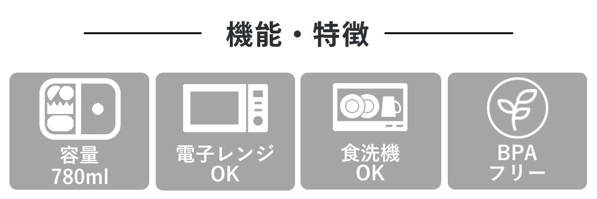 | 材質 | 弁当箱:PET/ABS樹脂、ウレタン塗装(抗菌塗装) 中蓋:ポリエチレン樹脂 BPAフリー |