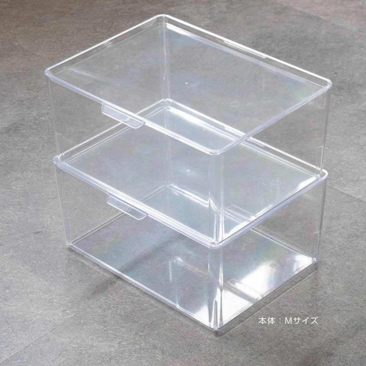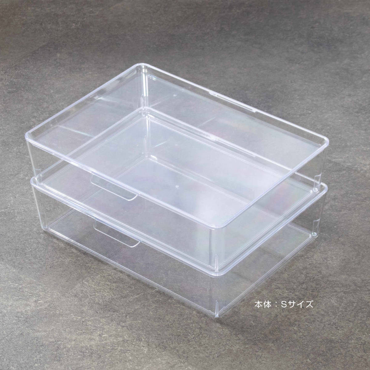 スケルトンボックスS、M、L、全てのサイズに対応している専用フタです。本体と同じ透明度の高いスケルトンデザインで、フタをしていても中身をひと目で確認することができます。