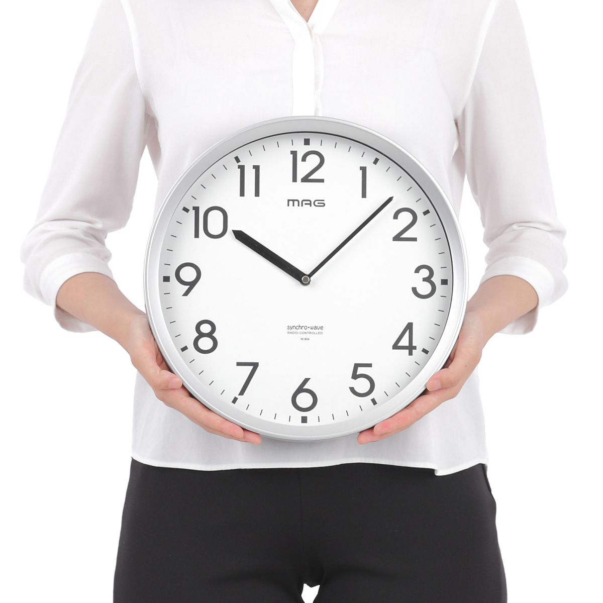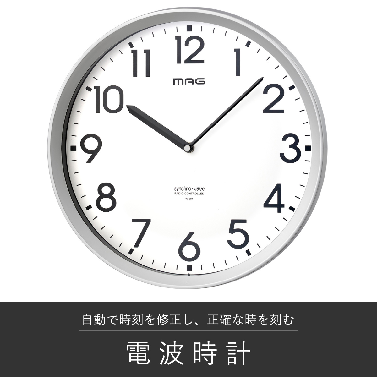 掛け時計 エコグリン MAG 電波時計 電池寿命5年 秒針なし 静音 ( グリーン購入法適合商品 マグ ウォールクロック 時刻同期 時計 壁掛け アナログ時計 31cm 電池1本で約5年稼働 シンプル レトロ おしゃれ 文字盤 )