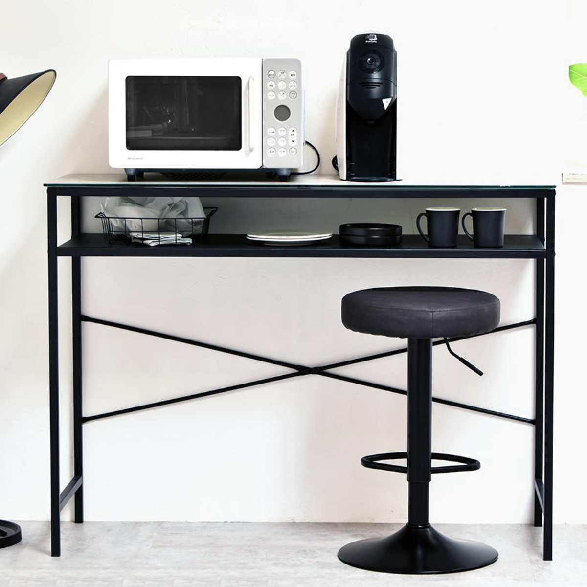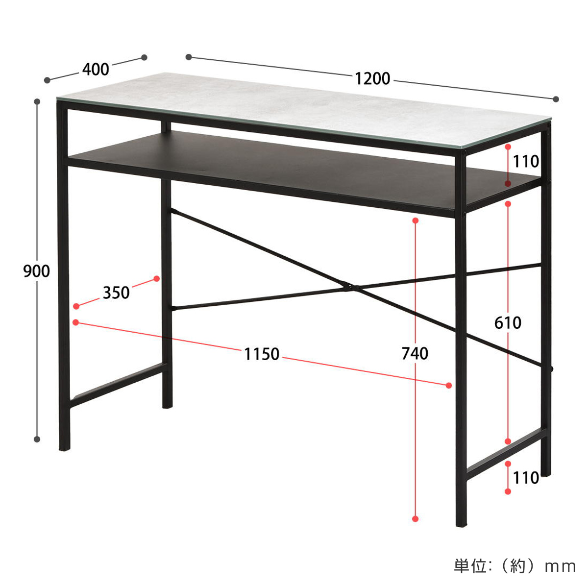 カウンターテーブル 幅120cm セラミック天板 CERABILL ( キッチンカウンター スリム テーブル 奥行40 収納 棚付き 強化ガラス セラミック 高さ90 キッチン収納 家電 レンジ台 作業台 熱に強い 傷に強い ゴミ箱収納 レンジボード ) 【ライトグレー】