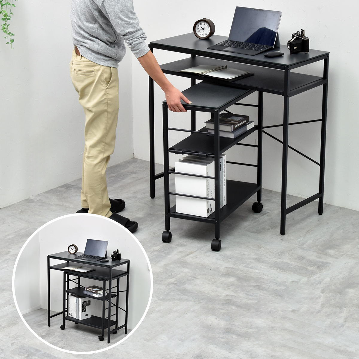同シリーズのワゴンとあわせると、 必要なときは引き出してサブデスクとして便利です。不要な際はすっきり収納できるダブルデスクとしてお使いいただけます。