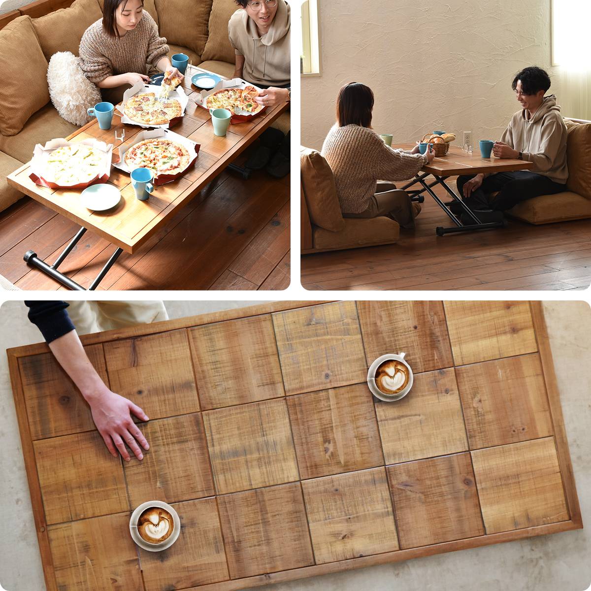 ダイニングテーブル 昇降式 幅122.5cm infinite ( テーブル キャスター付き 高さ調節 木製 杉 天然木 古材風 コンパクト 収納 センターテーブル リビングテーブル 昇降式テーブル ダイニング 食卓 おしゃれ 省スペース 完成品 )