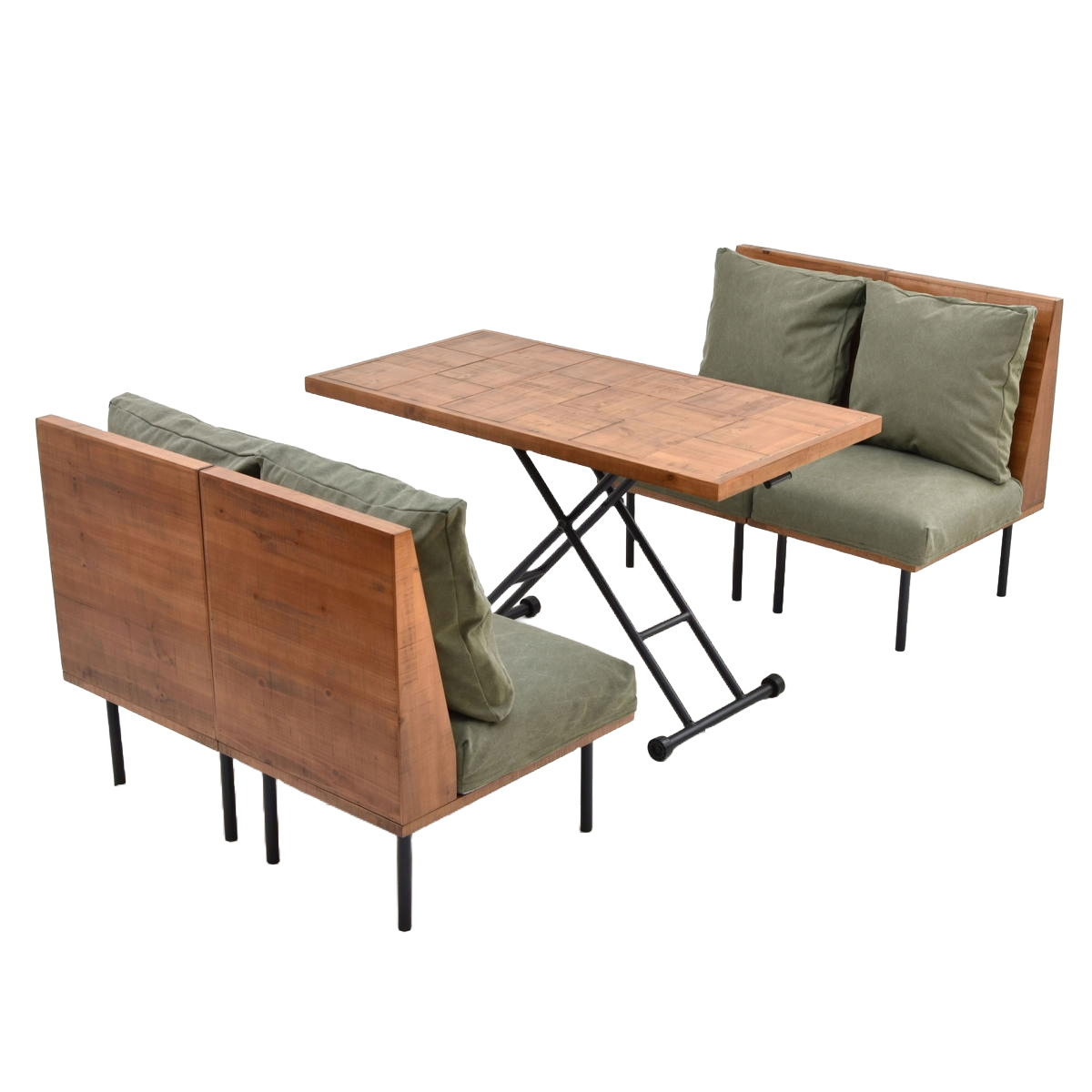 ダイニングテーブルセット 4人掛け 5点セット 昇降式テーブル幅122.5cm 1人掛けソファ×4 infinite ( ソファー 脚 取り外し チェア テーブル 高さ調節 木製 天然木 リビングソファ カバー ダイニングソファ 連結 レイアウト ) 【キャンバスグリーン】