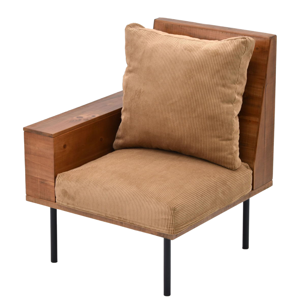 シンプルでコンパクトな1人掛けソファ 収納庫肘掛け付きソファ
