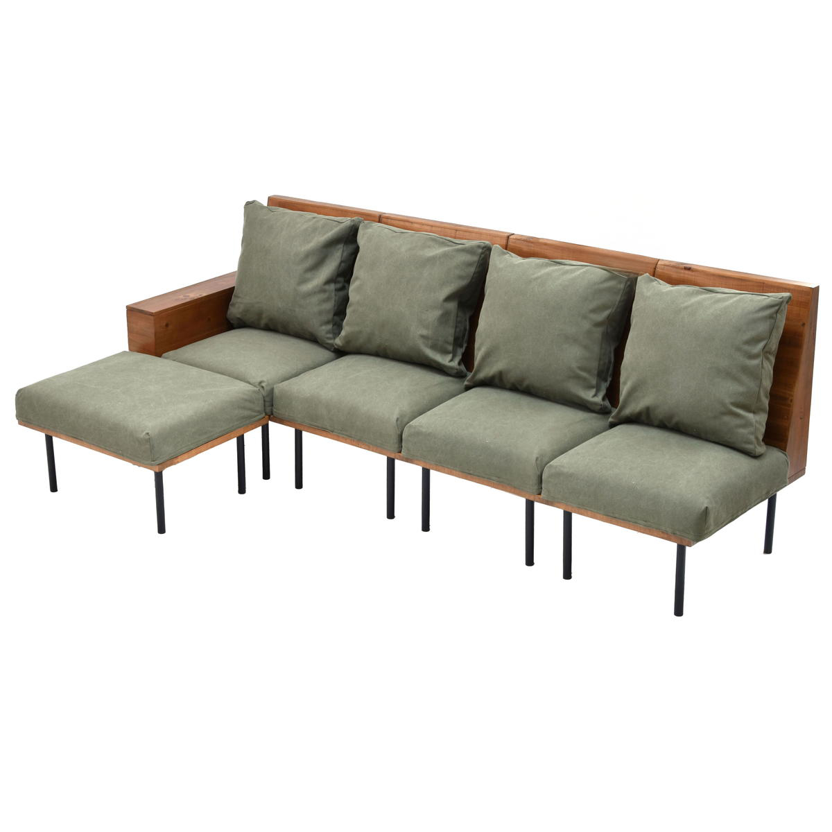 ソファ 4人掛け 幅220cm L字型 オットマン付 組み合わせ infinite ( ソファー 脚 取り外し チェア ローソファ コンパクト 木製 天然木 リビングソファ ファブリック カバー ダイニングソファ 連結 レイアウト おしゃれ 収納付き ) 【キャンバスグリーン】