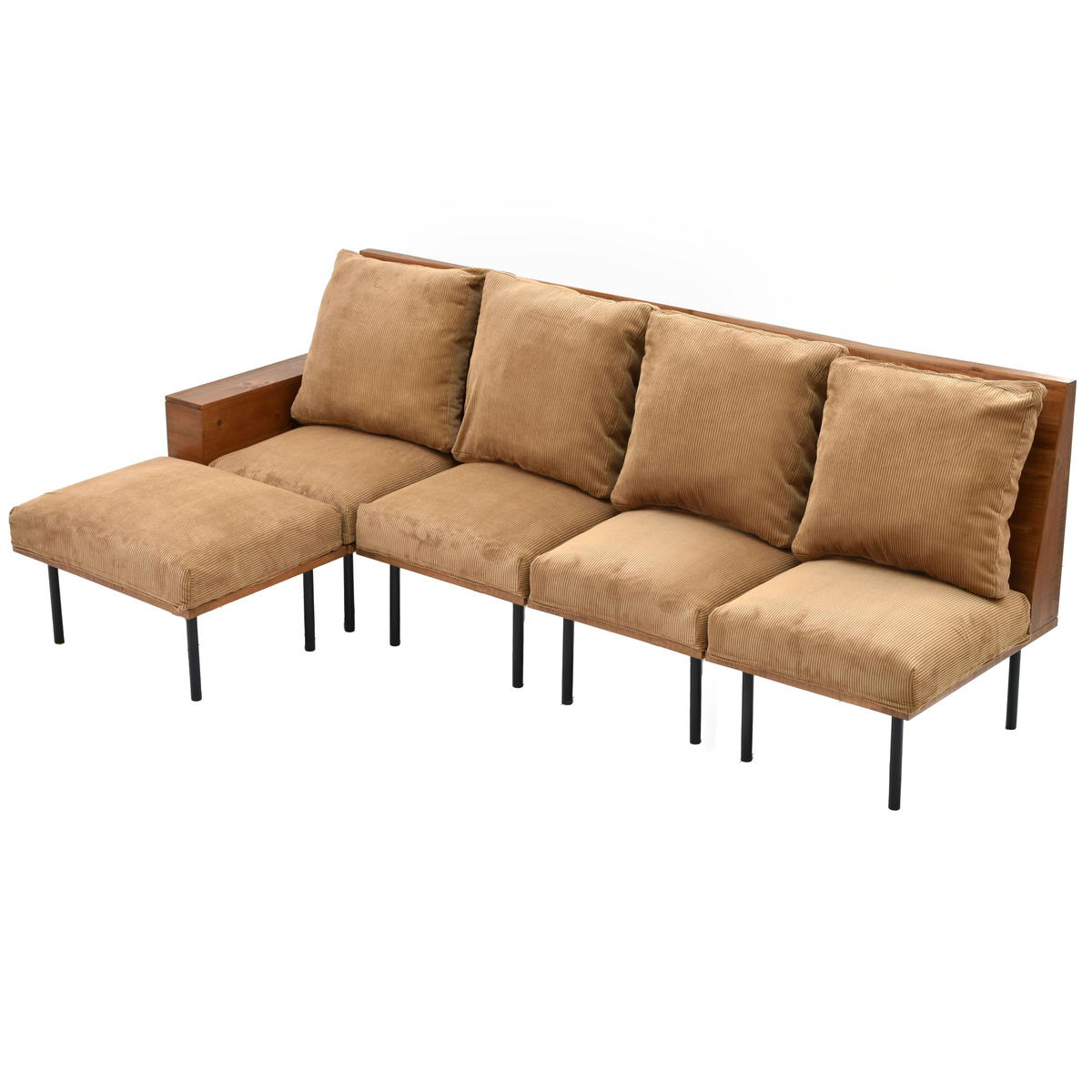 1人掛けソファ3脚、収納付き肘掛けソファ1脚、オットマンの5点セット。連結金具で連結することで手軽にカウチソファに。オットマンをスツール代わりに、2脚+2脚の対面レイアウトでも、単独でもお使いいただけます。ロータイプの脚に付け替えることも可能です。