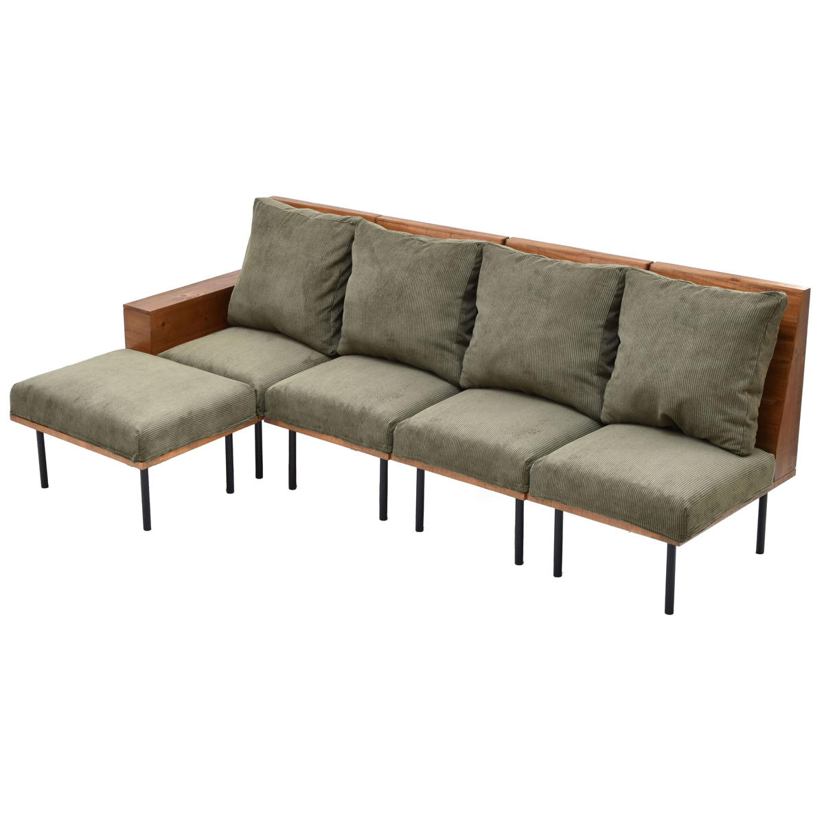 ソファ 4人掛け 幅220cm L字型 オットマン付 組み合わせ infinite ( ソファー 脚 取り外し チェア ローソファ コンパクト 木製 天然木 リビングソファ ファブリック カバー ダイニングソファ 連結 レイアウト おしゃれ 収納付き ) 【コーデュロイグリーン】
