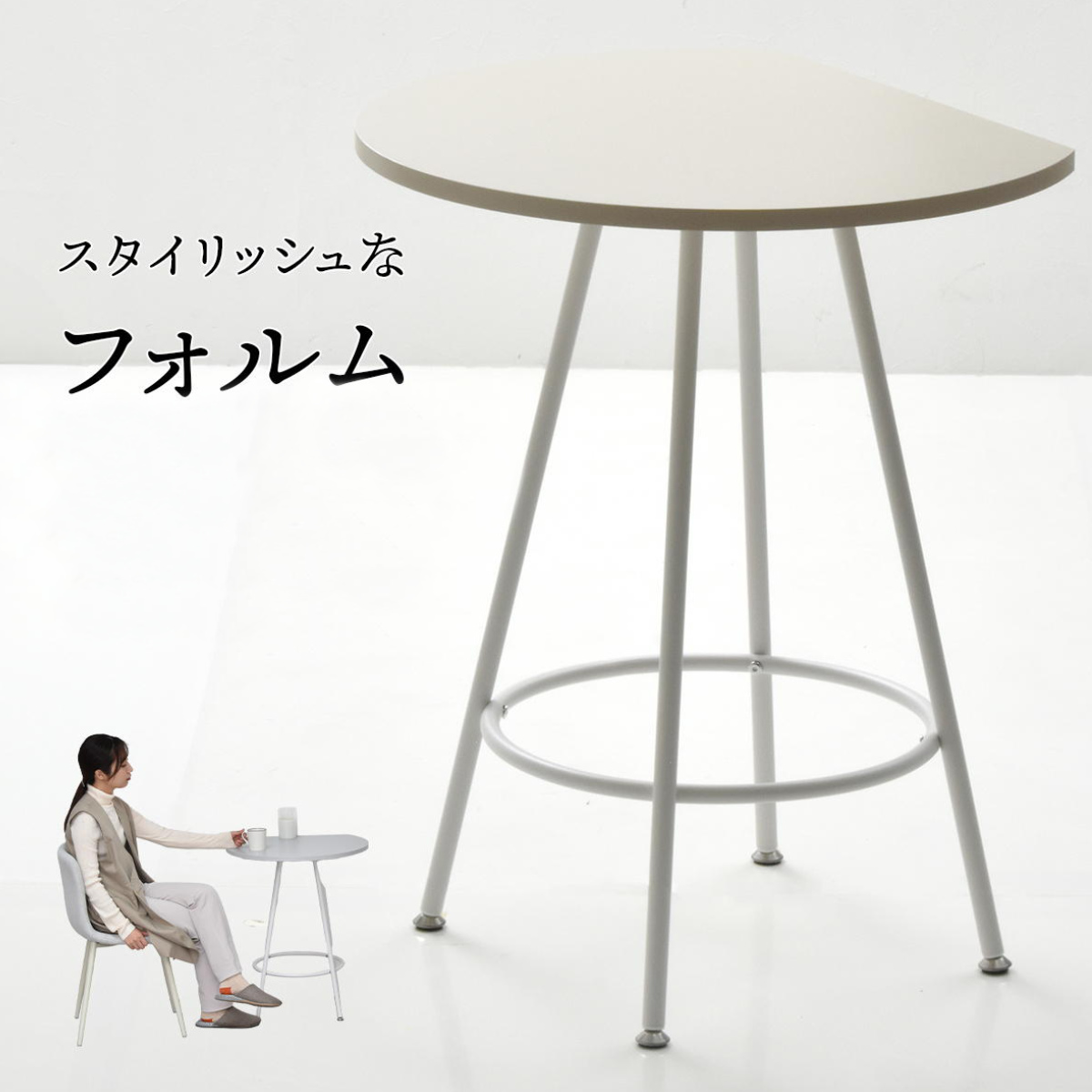 ダイニングテーブル 半円型 幅60cm カフェテーブル Noko ( テーブル 机 円形 丸 壁付け 省スペース 丸テーブル 半円テーブル コーヒーテーブル メラミン天板 作業デスク キッチンカウンター フラワースタンド おしゃれ 在宅ワーク ) 【ライトグレー】