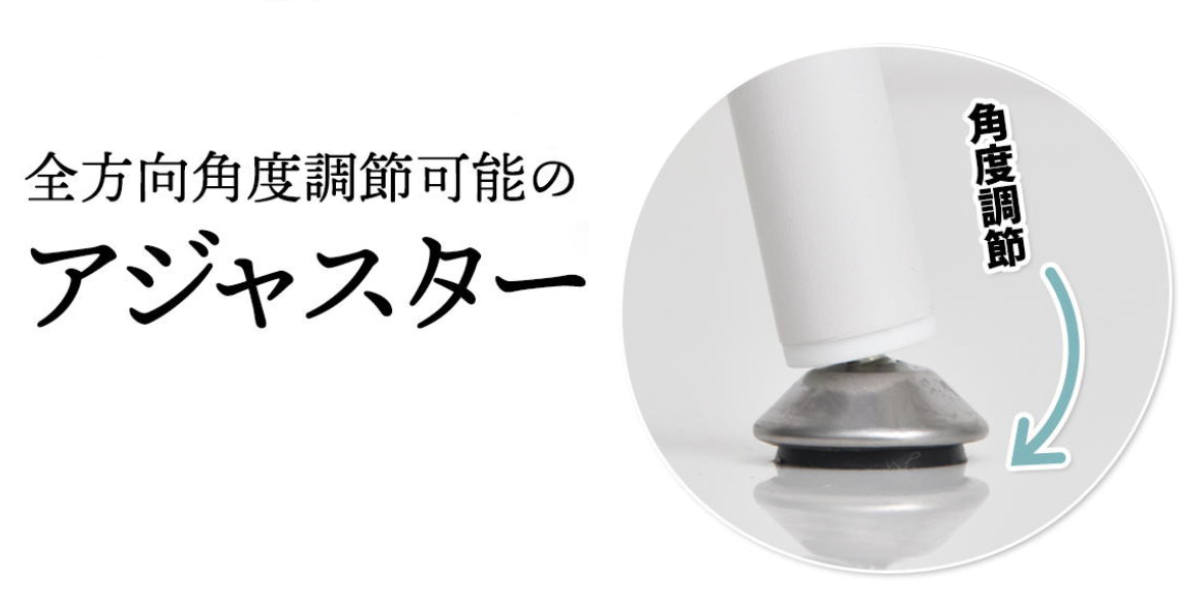 全方向に角度調節ができるアジャスター付きで、斜めに伸びた脚でも安定して置けます。フロアダメージや脚部の劣化を防ぐ保護機能もあります。