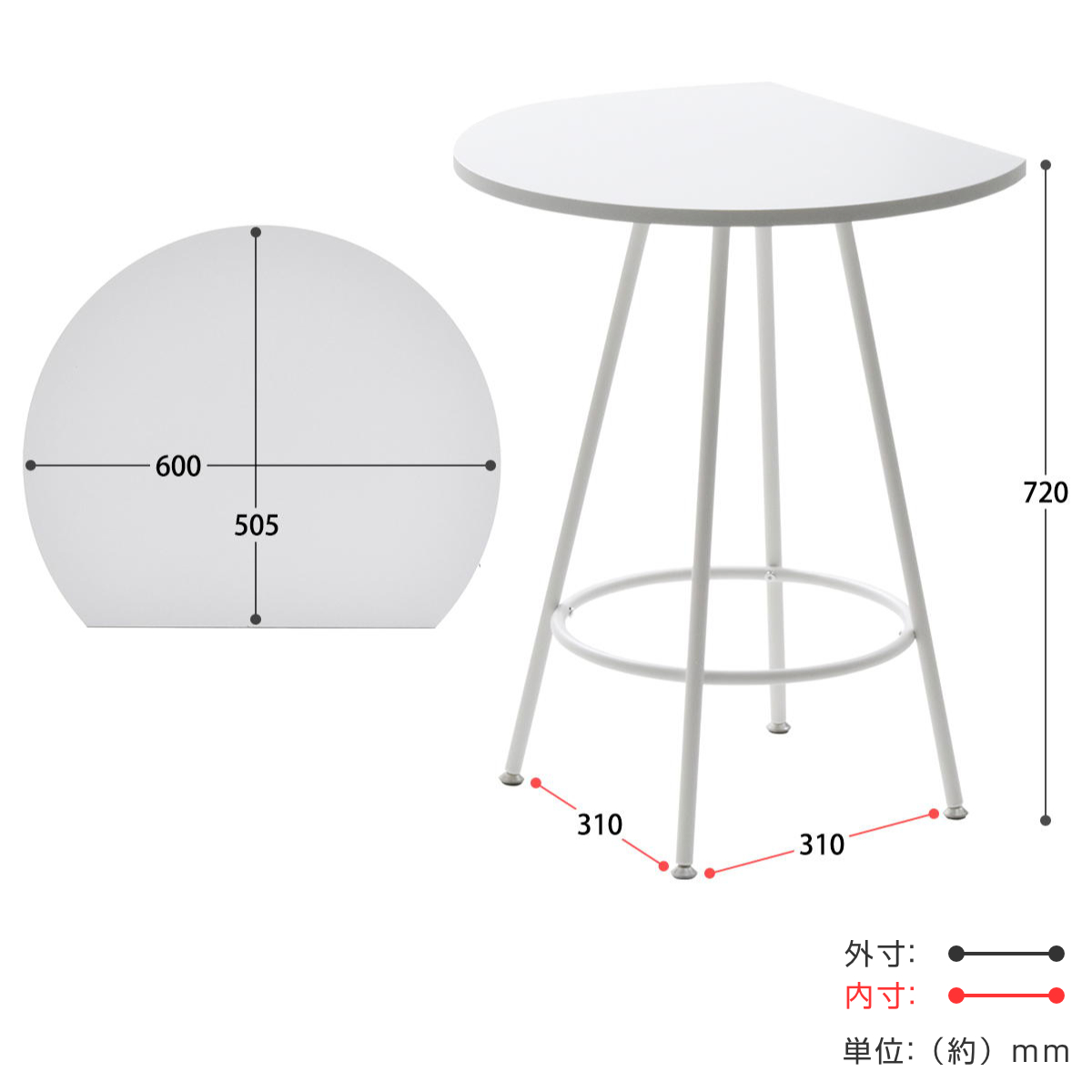 壁付け設置できるカフェテーブル 半円型 幅60cm