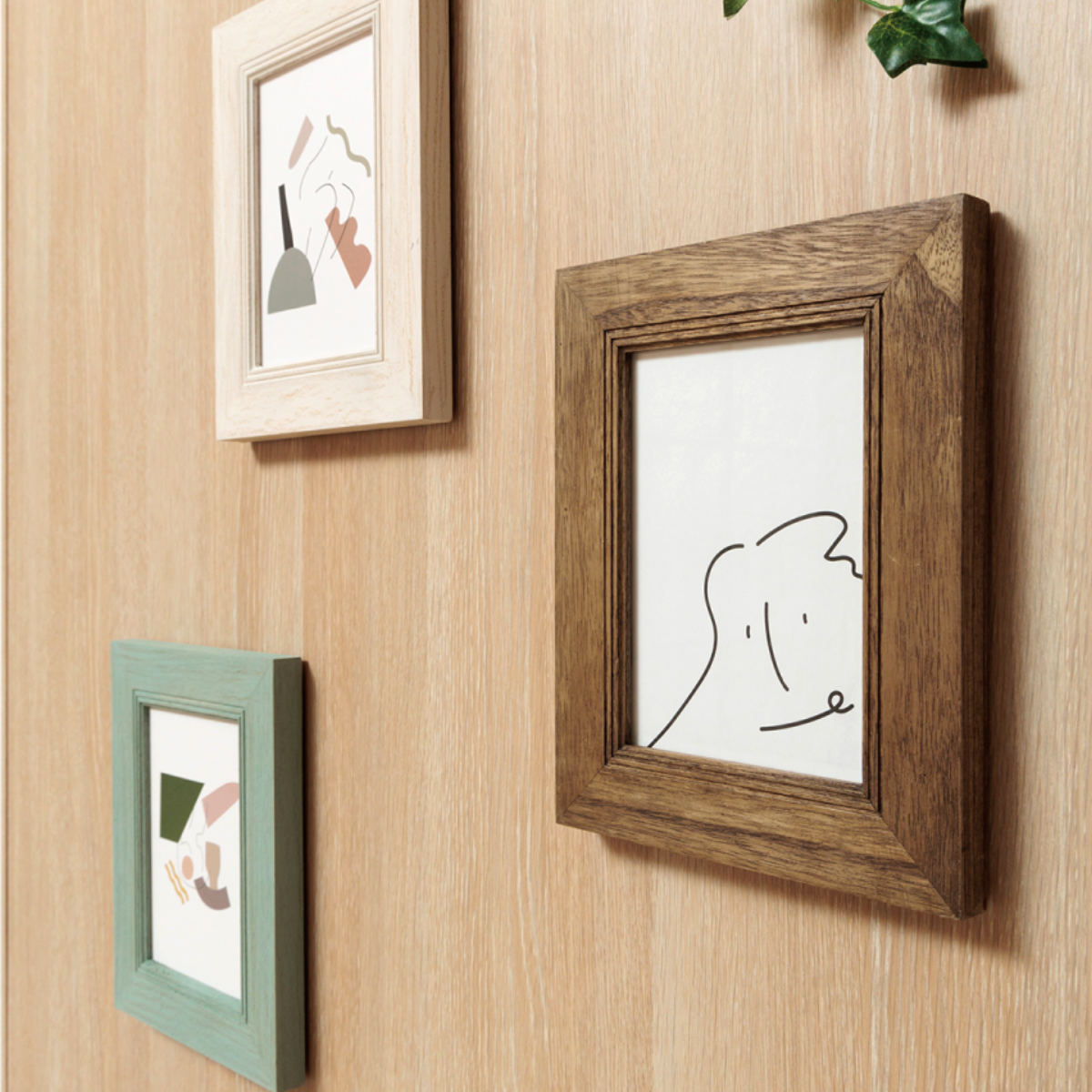 木目調デザインがインテリアに自然と溶け込む、お気に入りの写真やポストカードを気軽に飾ることができ、空間に温かみと個性をプラスします。複数枚を組み合わせれば、ギャラリー風のディスプレイも楽しめます。