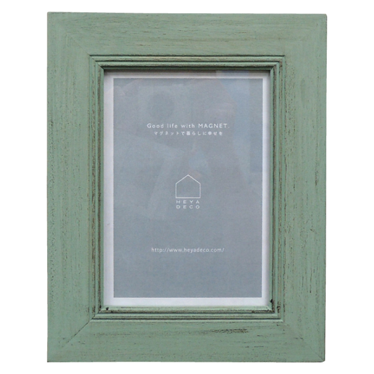 ヘヤデコ フレームデコ 2L フォトフレーム マグネット ( 磁石 写真立て 縦 横 2L判 マグネットタイプ 写真 フレーム 木製 額縁 パネル 飾る インテリア フォト 壁 ディスプレイ マグネットが付く壁 HEYADECO ) 【グリーン】