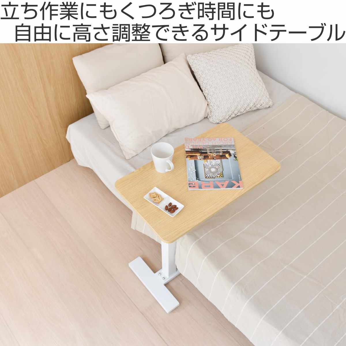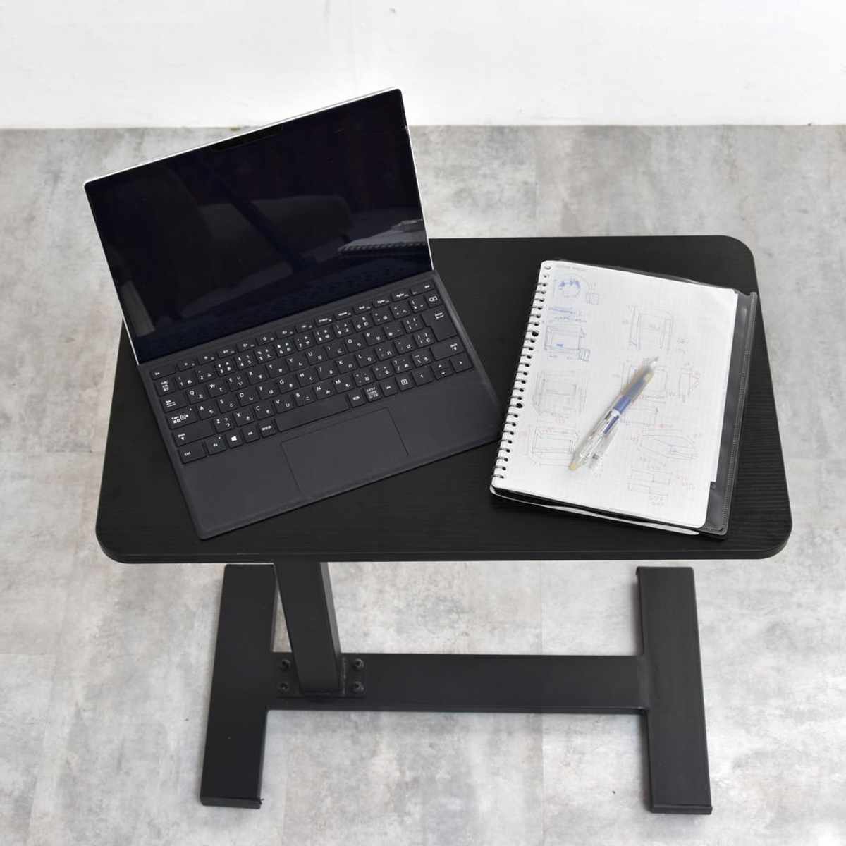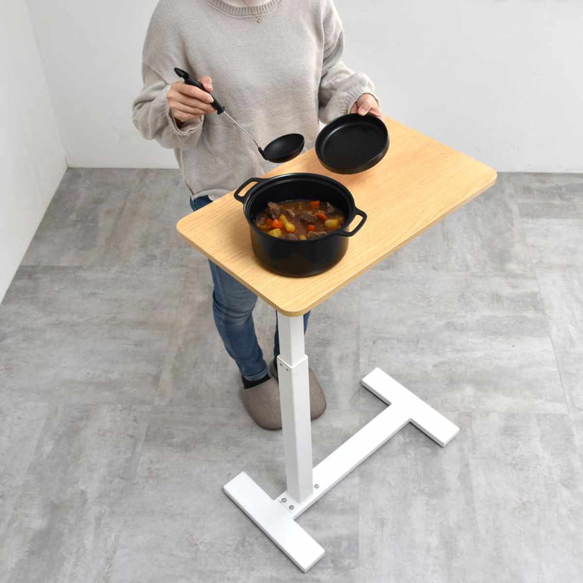 自由に高さを調節できる昇降機能が付いたサイドテーブルです。レバーを押すだけで、63.5~91cmの間を無段階で調整可能。高さを上げれば立ち作業もできるため、座りっぱなしで体に負担がかかりやすいデスクワークやリモートワークにもおすすめです。