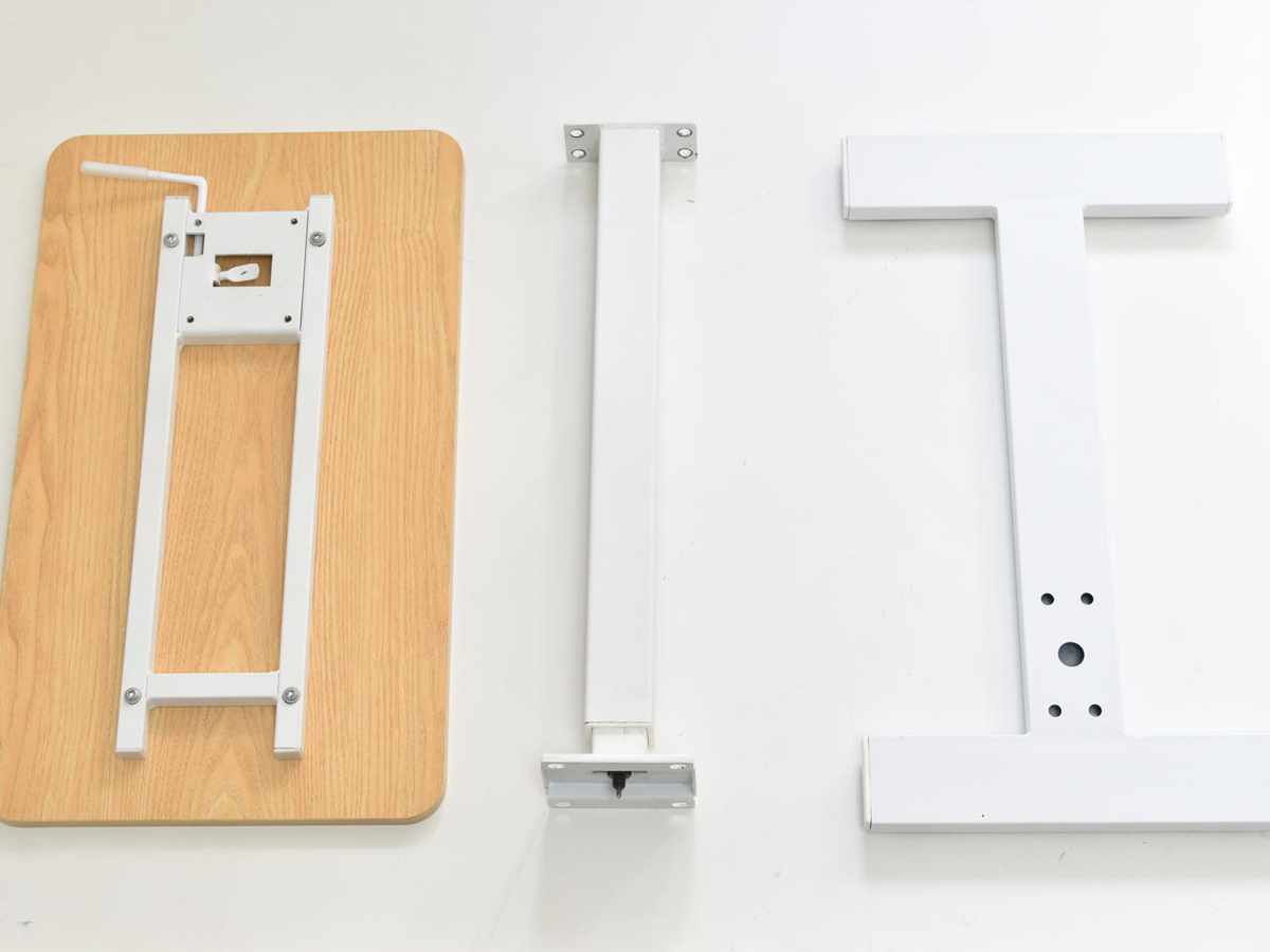 脚部、支柱、天板(調節レバー付き)の3つのパーツを付属の六角レンチでネジ止めするだけで、簡単に組み立てられます。