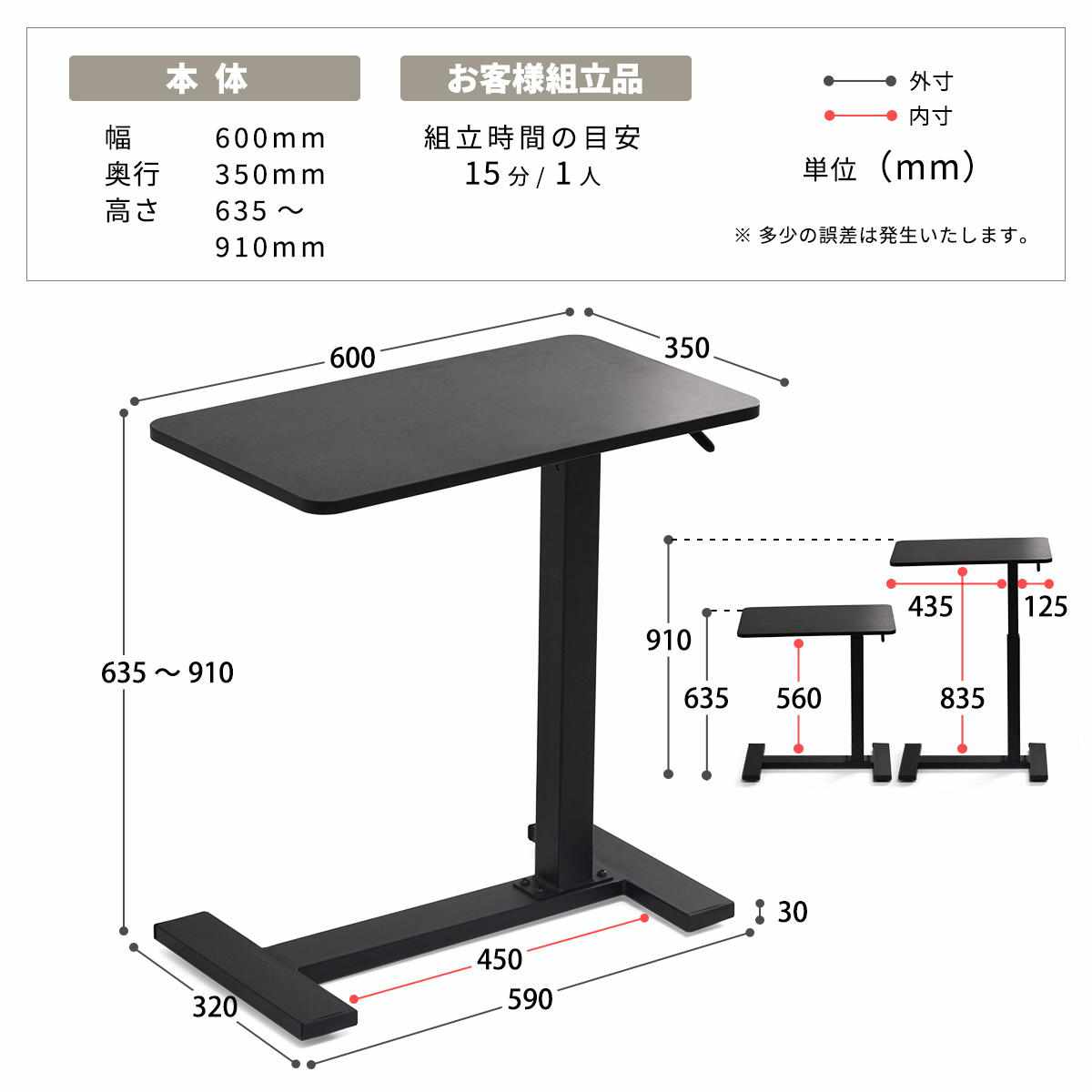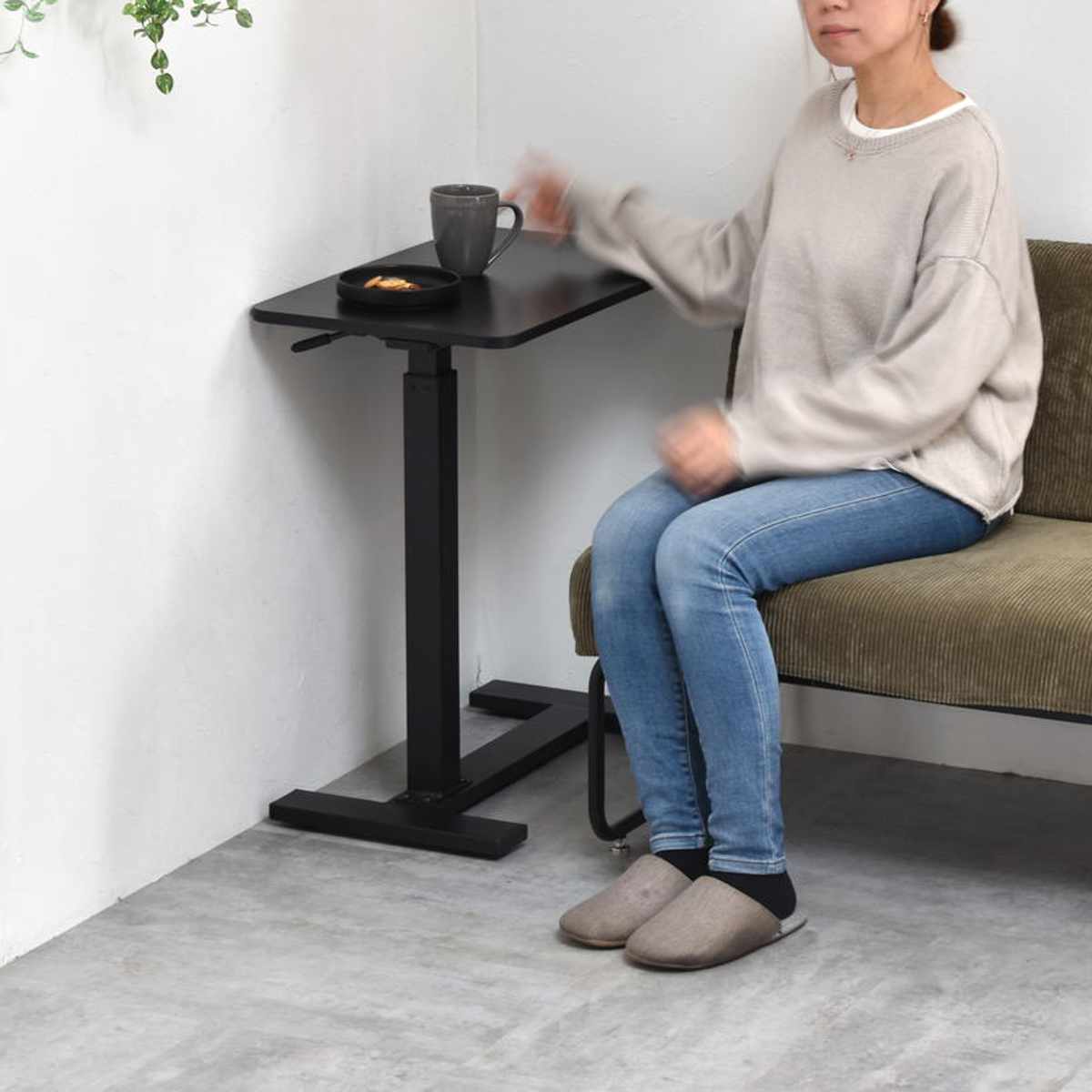 サイドテーブル 昇降式 高さ63.5~91cm TaB ( テーブル 机 高さ調節 無段階 コの字型 キャスター付き コンパクト ソファサイドテーブル ソファサイド ベッドサイド 立ち作業 サブテーブル ミニテーブル 食事 介護 ) 【ブラック】