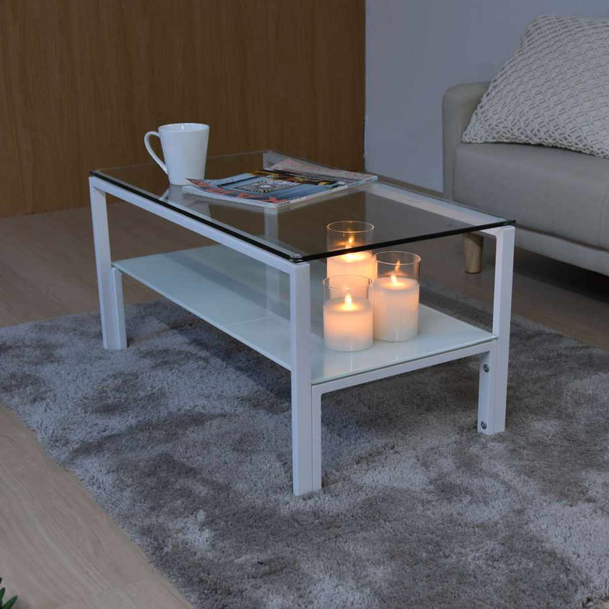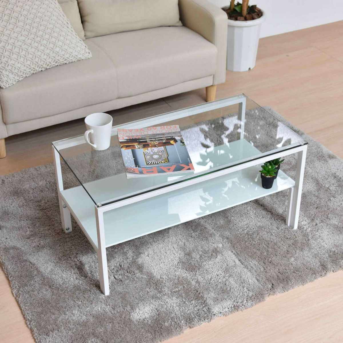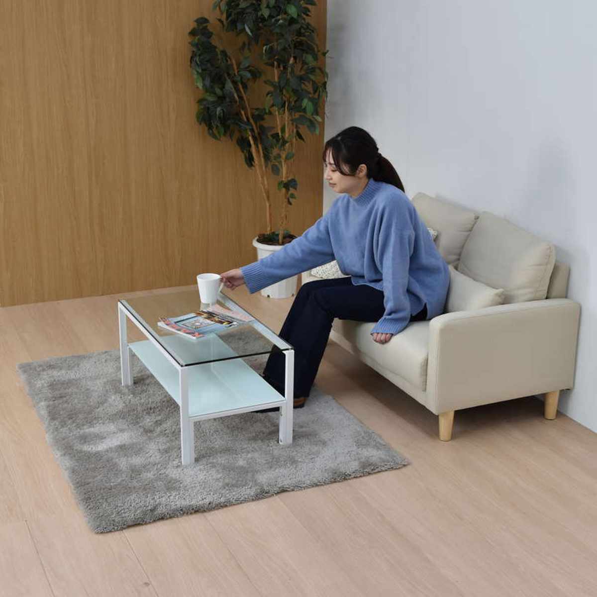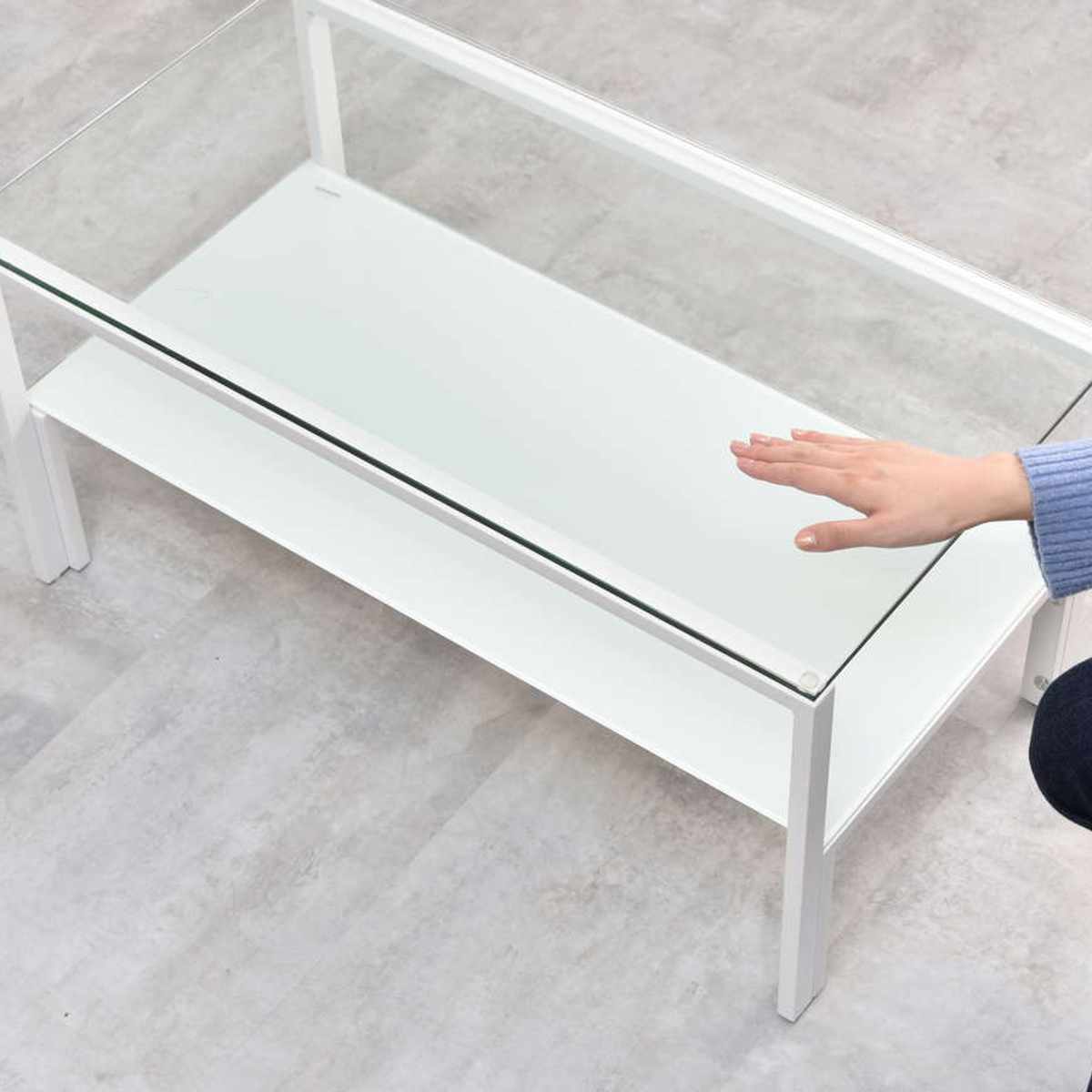 センターテーブル 幅75cm ガラス天板 収納棚付 Arca ( ローテーブル リビングテーブル 長方形 ガラステーブル 収納付き 奥行40cm ズレない天板 リビング おしゃれ 座卓 ディスプレイ カフェテーブル コーヒーテーブル 作業台 ) 【ホワイト】