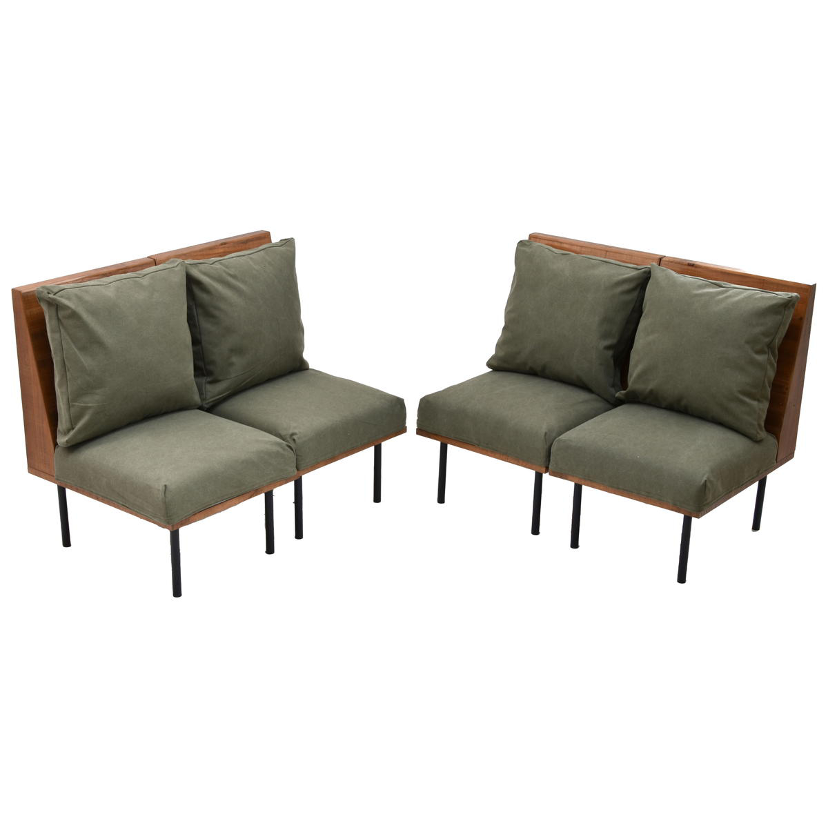 ソファ 1人掛け 同色4脚セット 組み合わせ infinite ( ソファー 脚 取り外し チェア ローソファ コンパクト 木製 天然木 リビングソファ 省スペース 肘なし ファブリック カバー ダイニングソファ 連結 レイアウト おしゃれ ) 【キャンバスグリーン】