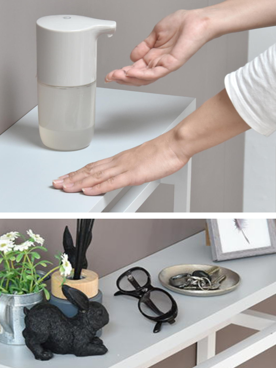 モノが置きやすく手に取りやすいちょうど良い高さです。玄関にマスクケースや鍵、印鑑などをサッと取れたり、消毒液やマスクなども使いやすい位置にスタンバイできます。