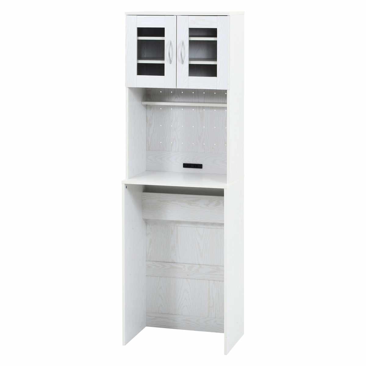 ゴミ箱上 キャビネット 幅59cm 2口コンセント ( ゴミ箱上収納 食器棚 ラック 棚 収納 ごみ箱上 省スペース 食器収納 コンセント付 可動棚 ナチュラル ホワイト ) 【ナチュラル】