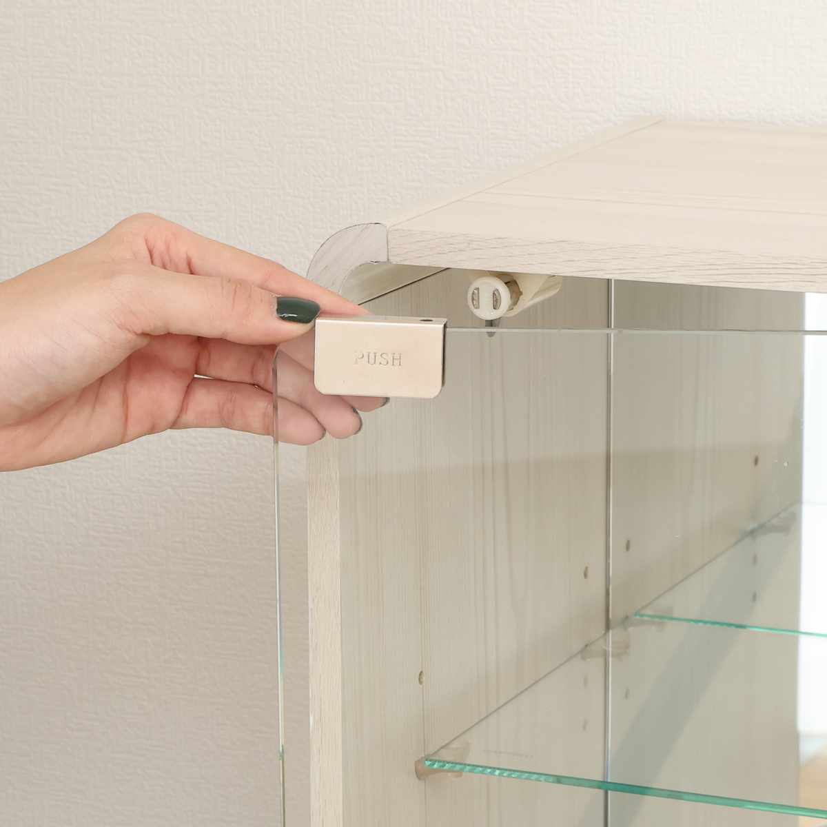 ガラス扉はワンタッチで開閉できるプッシュ式です。取っ手がないので、見た目がフラットでスッキリとしています。