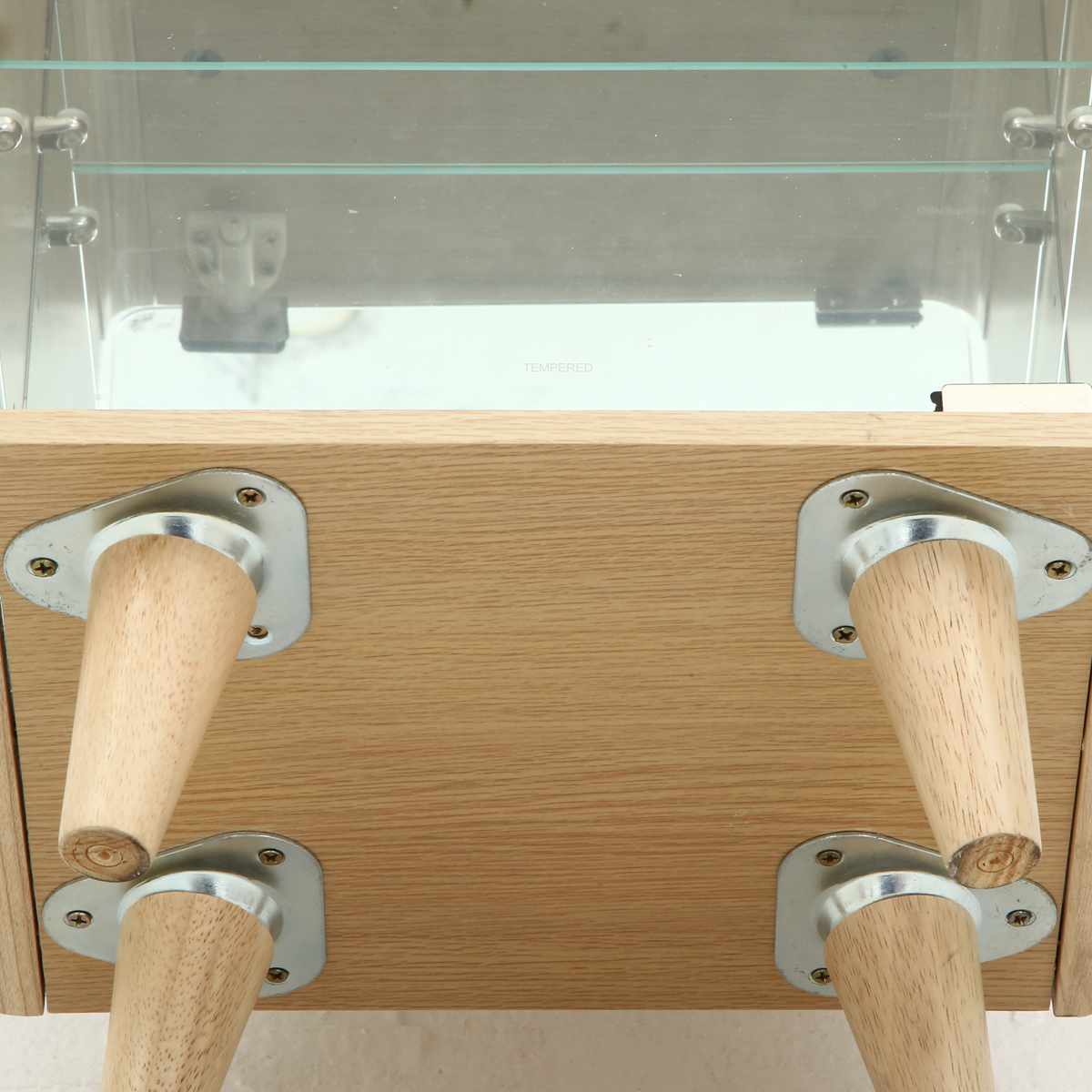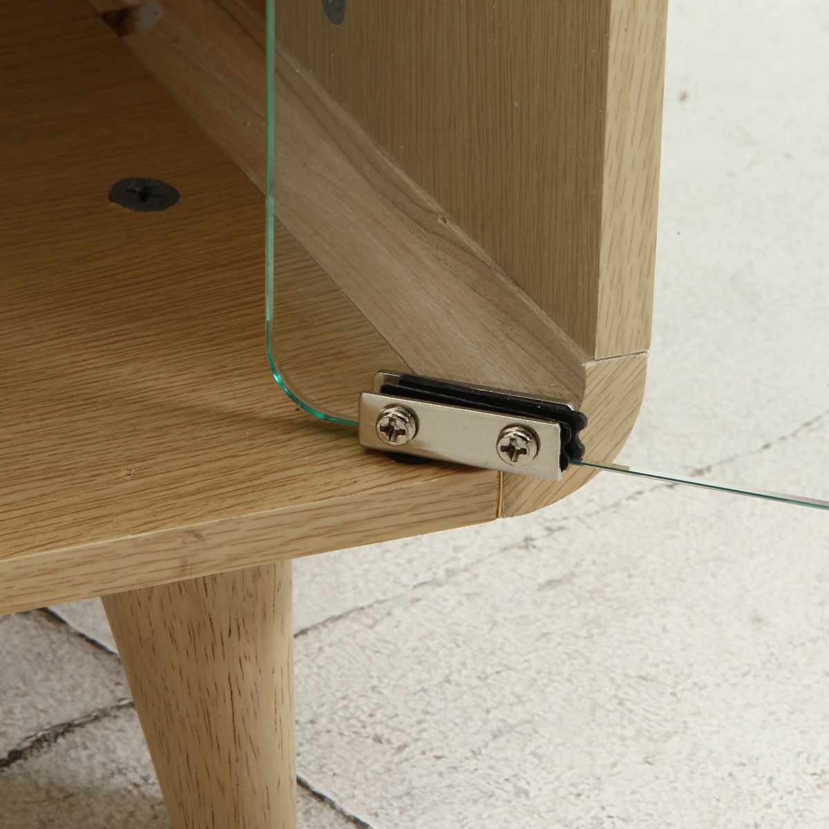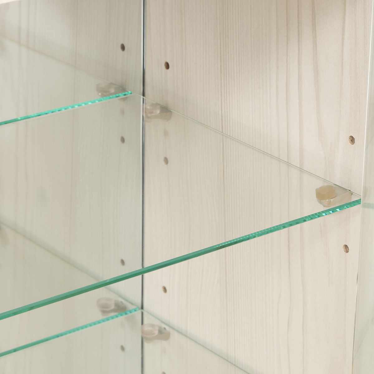 | 材質 | 本体:プリント紙化粧繊維板 棚板・扉部:強化ガラス 背面ミラー:ガラス 脚部:天然木 |